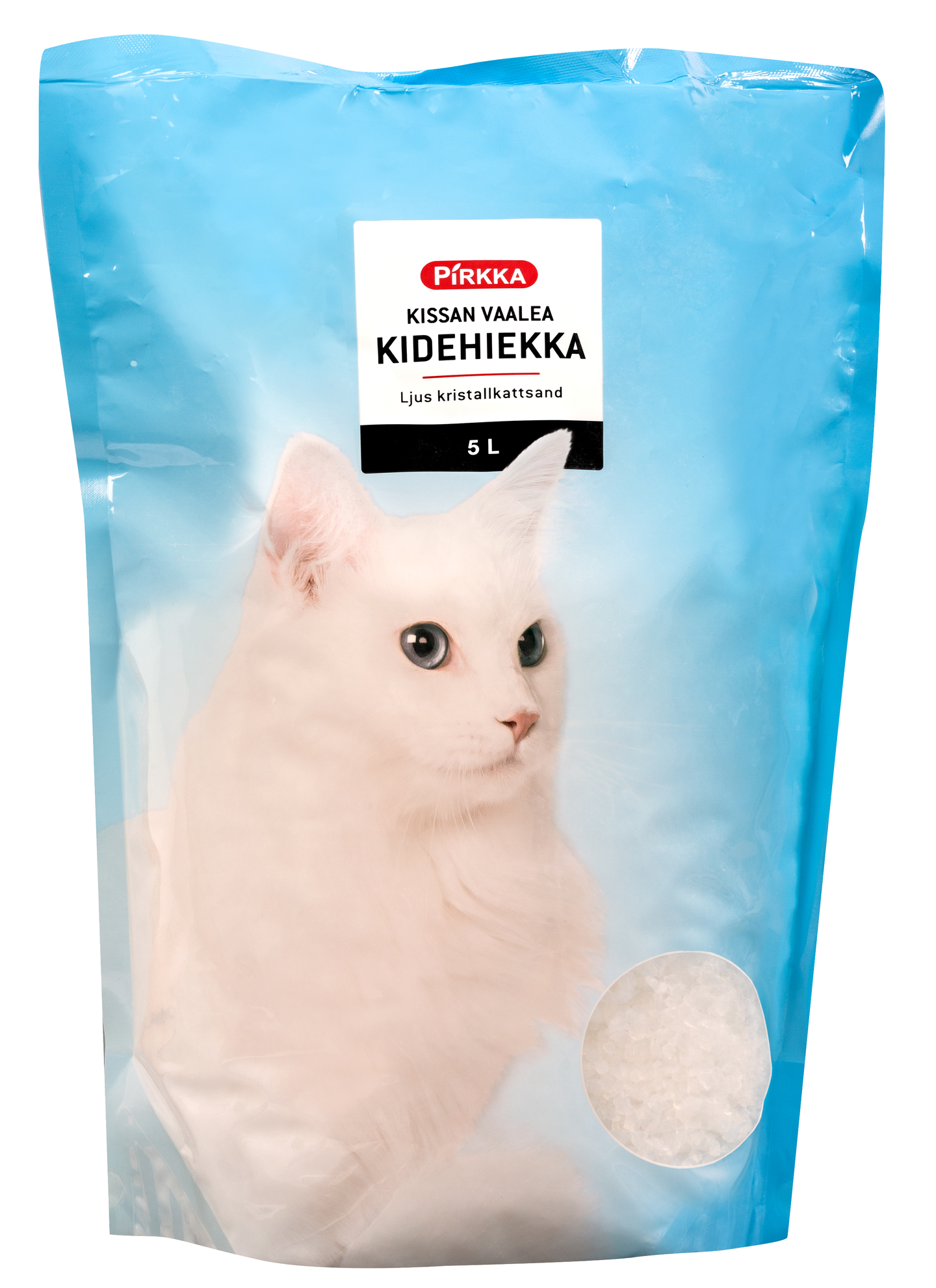 Pirkka kissan vaalea kidehiekka on 100 % piidioksidia (silikageeli). Kidehiekka on erittäin imukykyistä ja sitoo hajut hyvin.