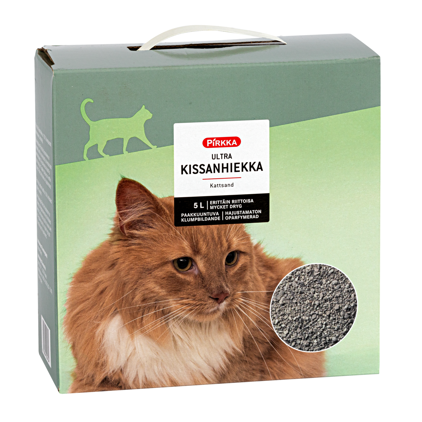 Pirkka ultra kissanhiekka on hienojakoinen, hajustamaton ja erittäin imukykyinen kissanhiekka. Se paakkuuntuu helposti ja sitoo hajun hyvin. Pakkaus soveltuu kartonkikierrätykseen.