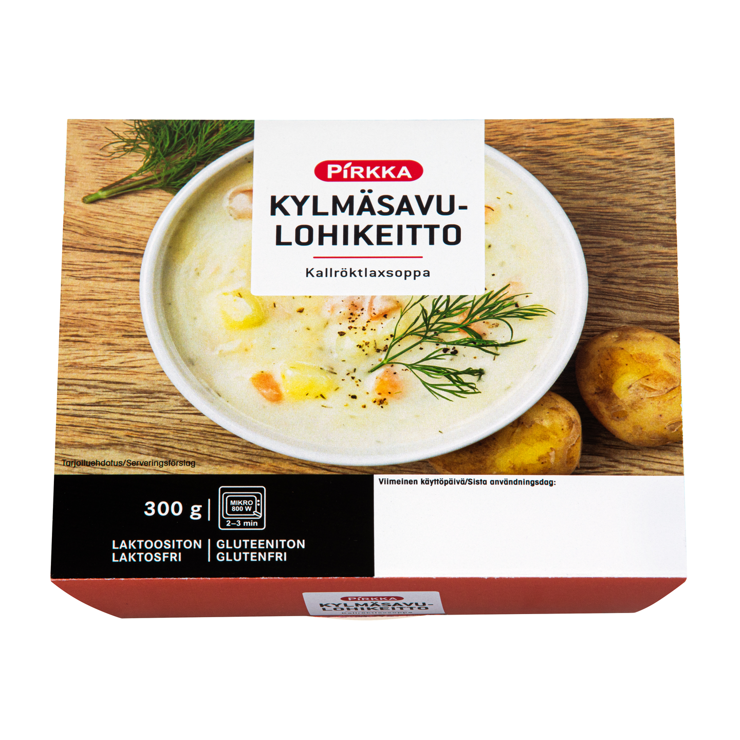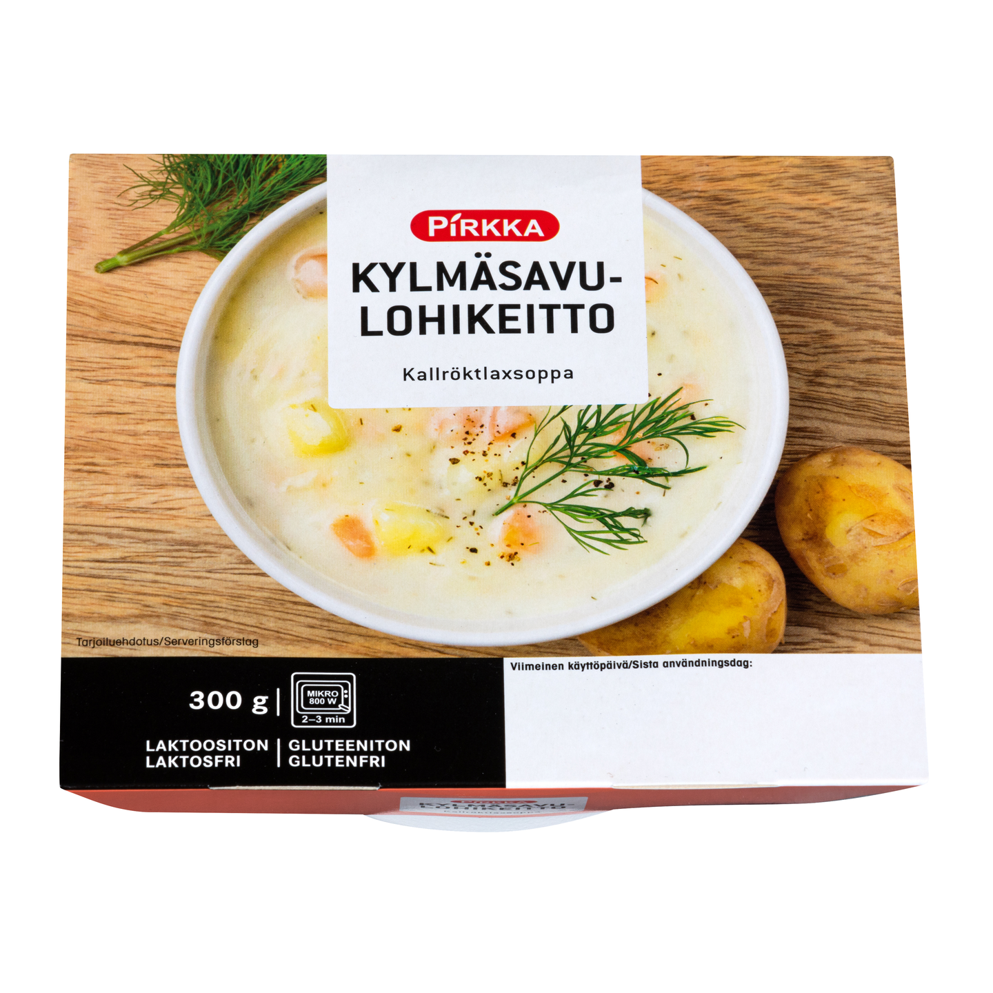 Pirkka kylmäsavulohikeitto on sakeaa, täyteläistä ja maukasta. Kylmäsavulohi antaa keitolle oman herkullisen makunsa. Keitto on laktoositonta ja gluteenitonta, sen valmistaa Suomessa Kasvis Galleria.