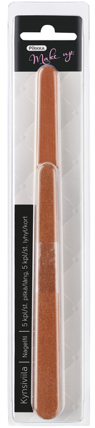 Pahviset Pirkka kynsiviilat kynsien lyhentämiseen ja siistimiseen. Viiloissa on karkeampi puoli kynsien lyhentämiseen ja muotoiluun ja pehmeämpi puoli kynsien viimeistelyyn. Pakkaus sisältää 5 kpl lyhyitä ja 5 kpl pitkiä viiloja.