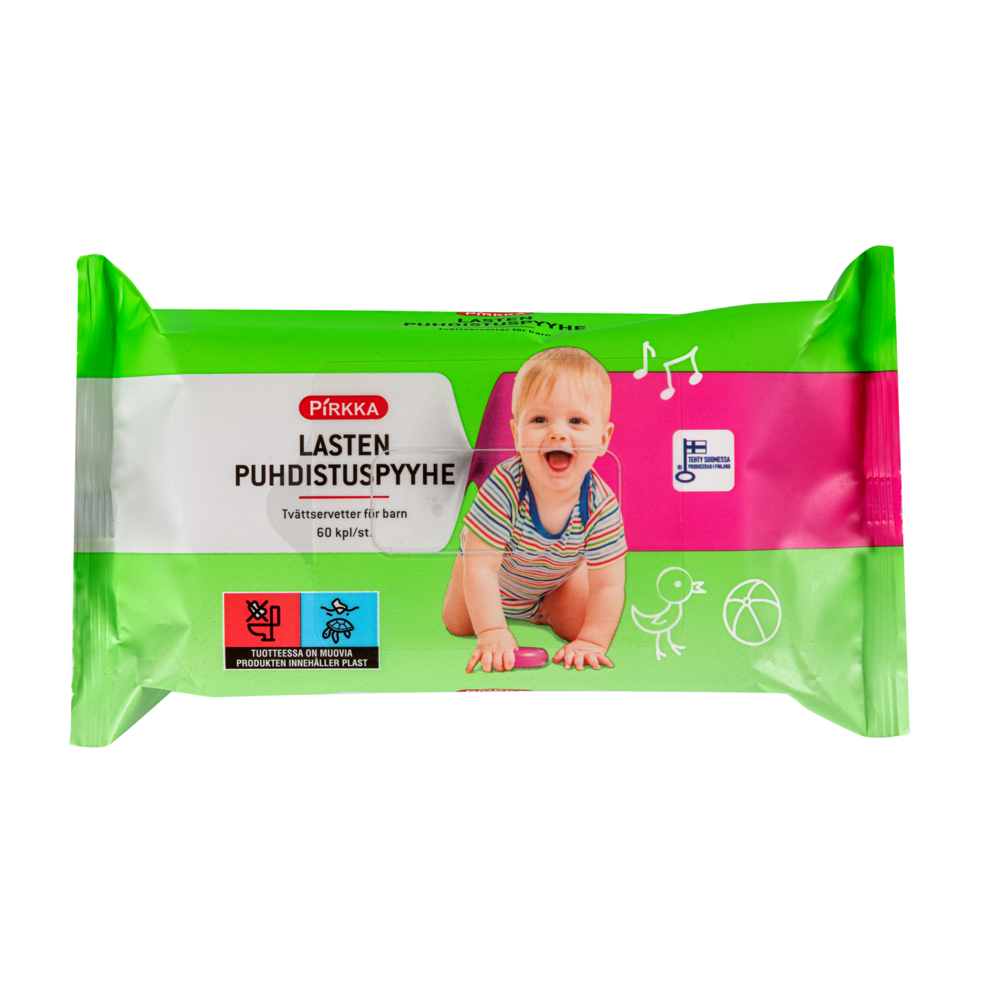 Pirkka lasten kosteat puhdistuspyyhkeet puhdistavat hellävaraisesti lapsen ihon kasvoista varpaisiin. Pehmeässä, kestävässä, kangasmaisessa pyyhkeessä on raikas tuoksu. Puhdistuspyyhkeet eivät sisällä alkoholia. Tuote on valmistettu Suomessa.