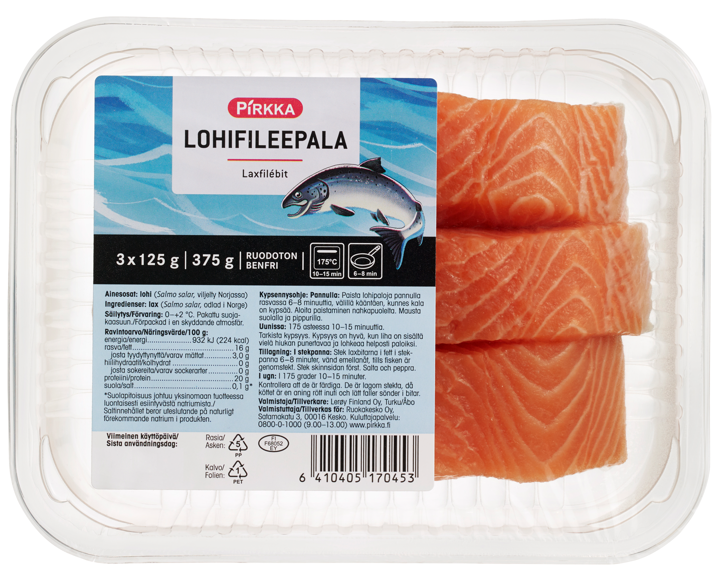 Pirkka lohifileepala 3x125g/375g