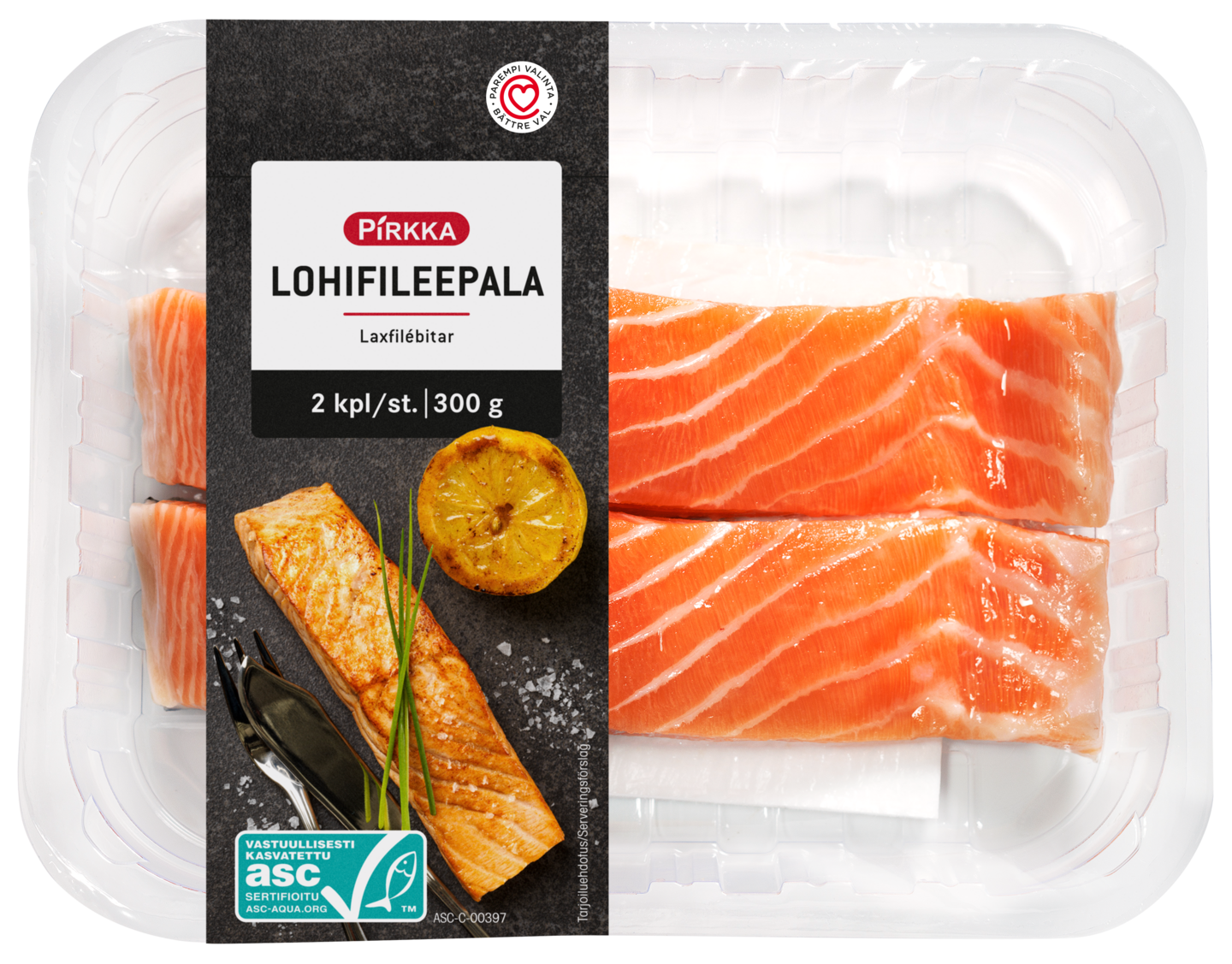 Pirkka lohifilee on tehty norjalaisesta ASC-sertifioidusta lohesta. Kaksi annospalaa valmistuu nopeasti pannulla paistamalla.