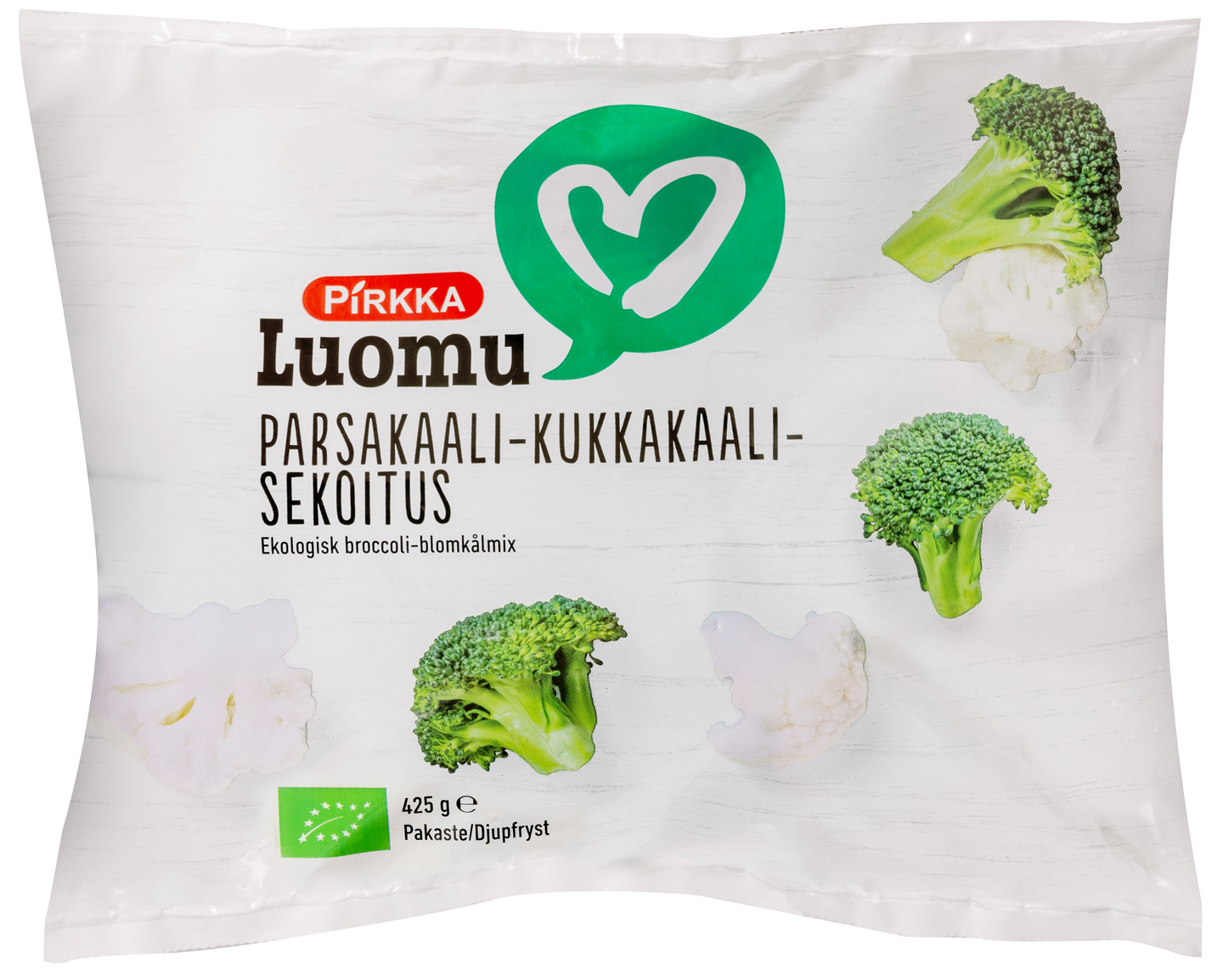 Pirkka Luomu parsakaali-kukkakaalisekoitus on maistuva lisäke keitettynä esimerkiksi lihalle, kalalle tai kanalle. Se sopii hyvin myös keittoihin, patoihin, wokkeihin ja gratiineihin.