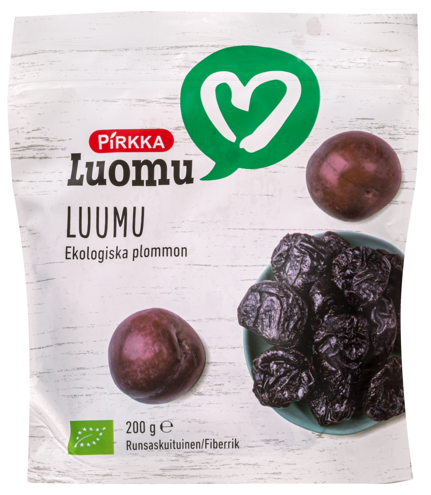 Pirkka Luomu luumut sopivat sellaisenaan naposteltaviksi, leivontaan, jälkiruokiin, kiisseleihin ja ruuanvalmistukseen.Syömällä säännöllisesti 100 g luumuja päivässä autat vatsan normaalia toimintaa. Luumujen kivet on poistettu koneellisesti, joten luumut saattavat sisältää kiviä tai niiden osia.