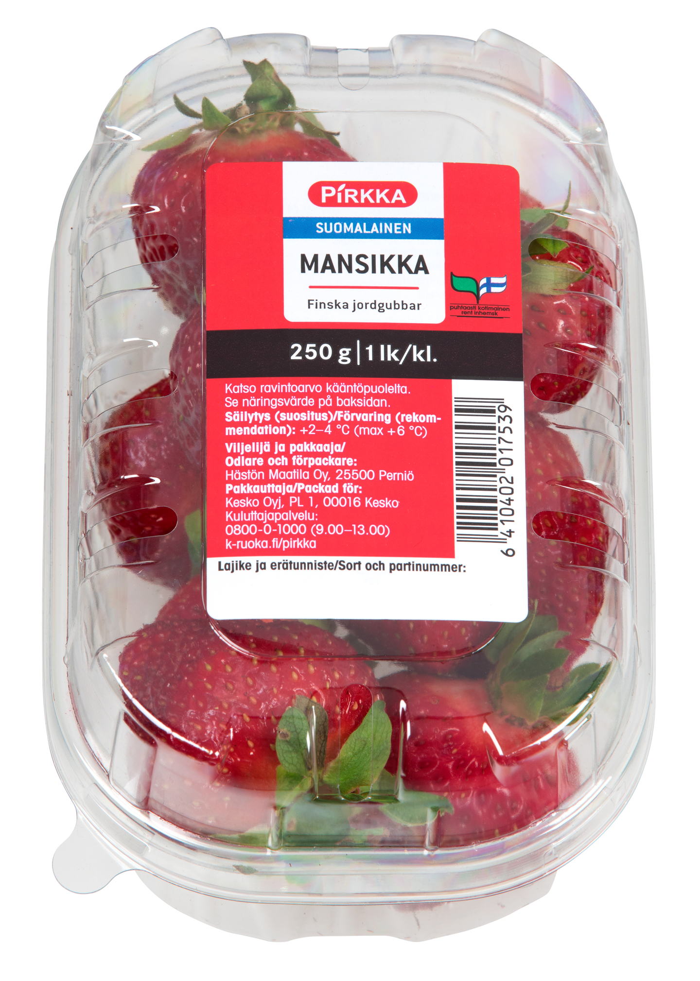 Aromikkaat Pirkka suomalaiset mansikat maistuvat sellaisenaan tai esimerkiksi lettujen ja jäätelön kanssa. Perinteinen mansikkakakku tai mansikkabrita on juhlien kestosuosikki. Kausituote.