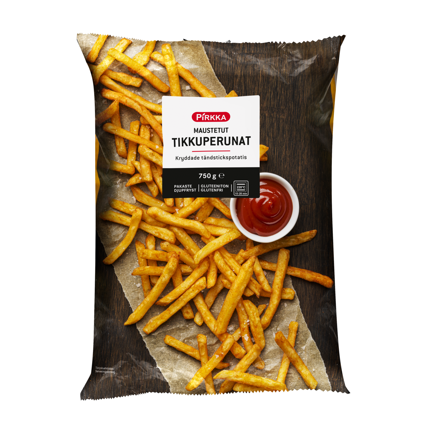 Pirkka maustetut tikkuperunat sopivat lisäkkeeksi kalan, makkaran tai pihvin kanssa sekä sellaisenaan dipattavaksi.