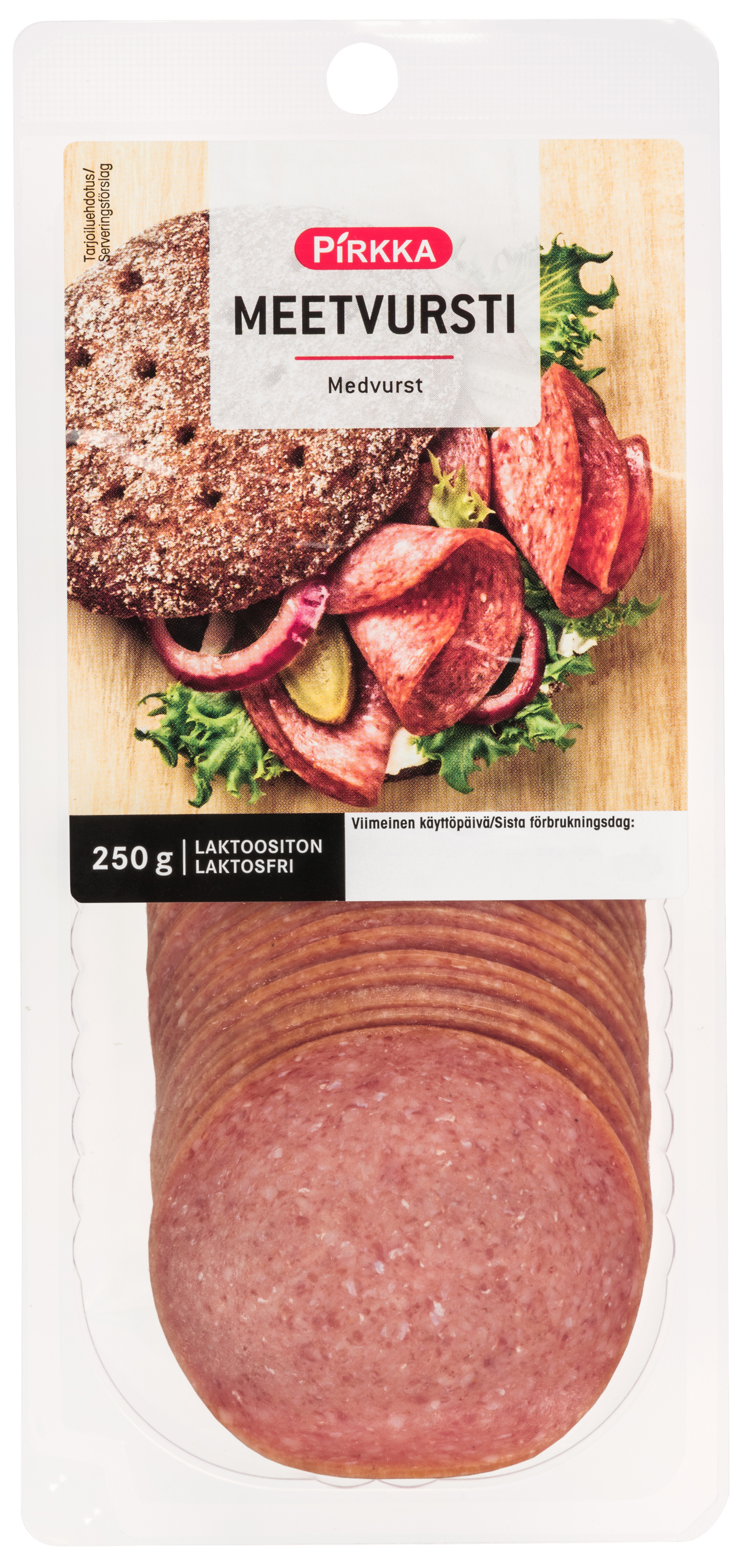 Kylmäsavustettu lihaisa perinteinen meetvursti. Sopii leivänpäälle ja ruoanvalmistukseen. Laktoositon ja gluteeniton tuote on valmistettu Suomessa.
