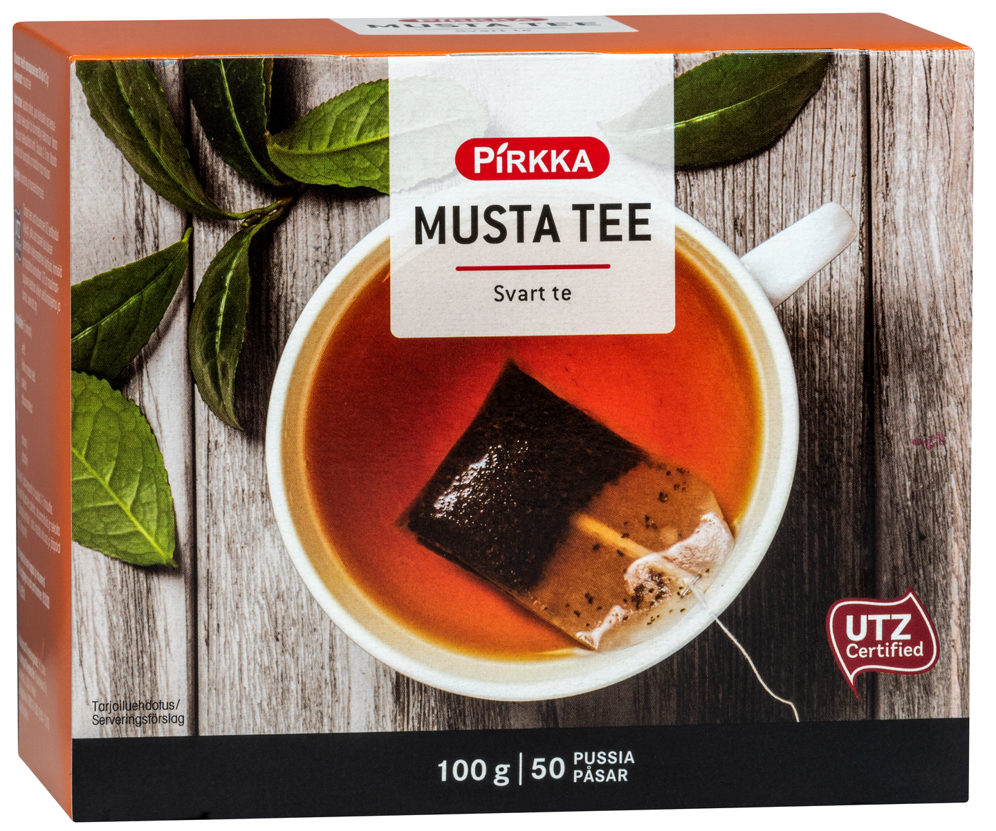 Pirkka musta tee on maustamatonta mustaa teetä annosteepusseihin pakattuna. Riittoisassa pakkauksessa on teepusseja 50 kpl. Varaa yksi teepussi teekupillista kohti. Keitä vesi ja hauduta haluttuun vahvuuteen. Mausta esimerkiksi hunajalla, sitruuna- tai inkivääriviipaleella. Tee on Rainforest Alliance -sertifioitua.