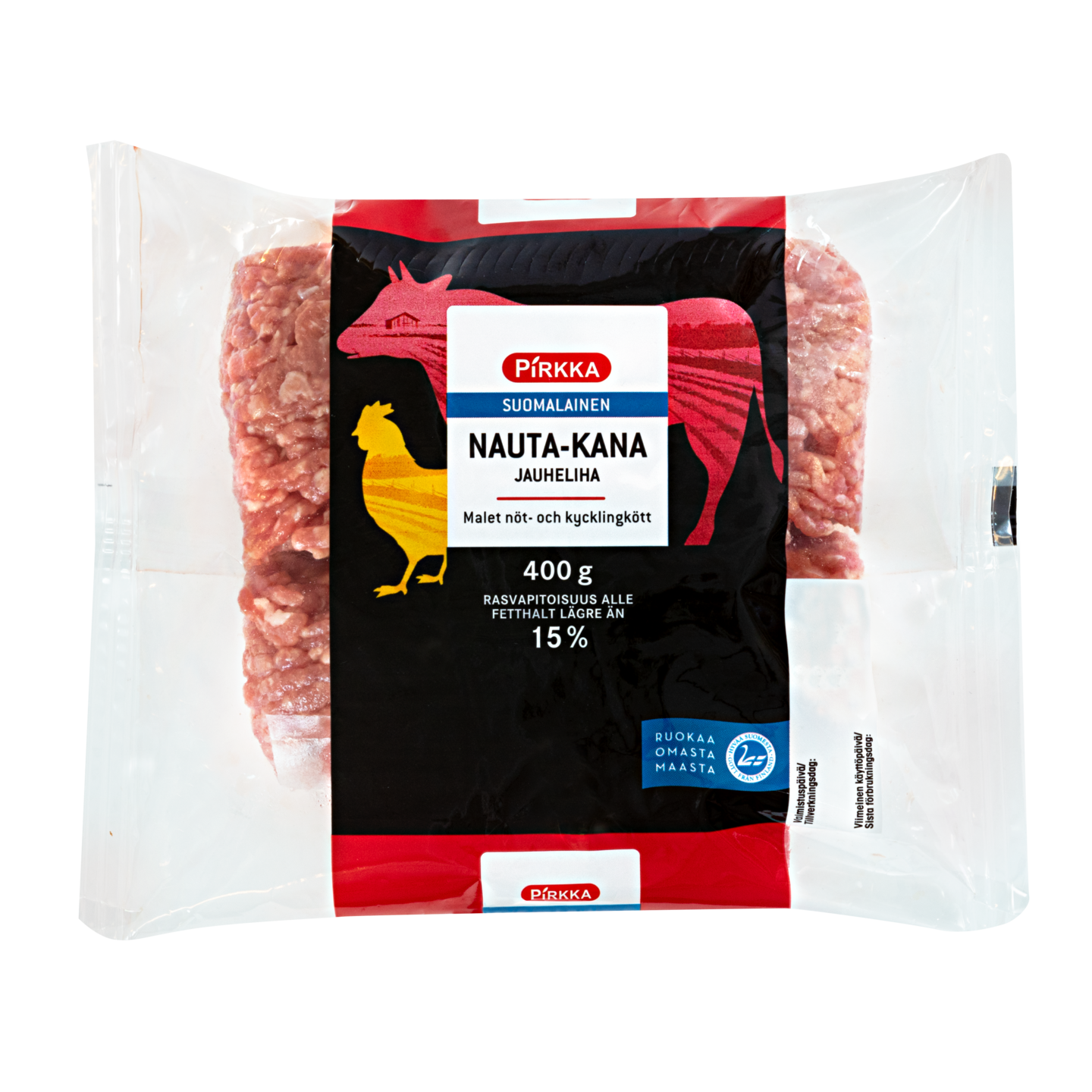 Erinomainen jauheliha kaikkeen ruoanvalmistukseen. Käytä lihapulliin -pihveihin -murekkeisiin, keittoihin ja laatikkoruokiin. Nauta-kanajauheliha sopii myös erinomaisesti tortillatäytteisiin, hampurilaisiin ja pizzaan. Se sisältää 50 % naudanlihaa ja 50 % kanaa. Rasvapitoisuus on 15 %.