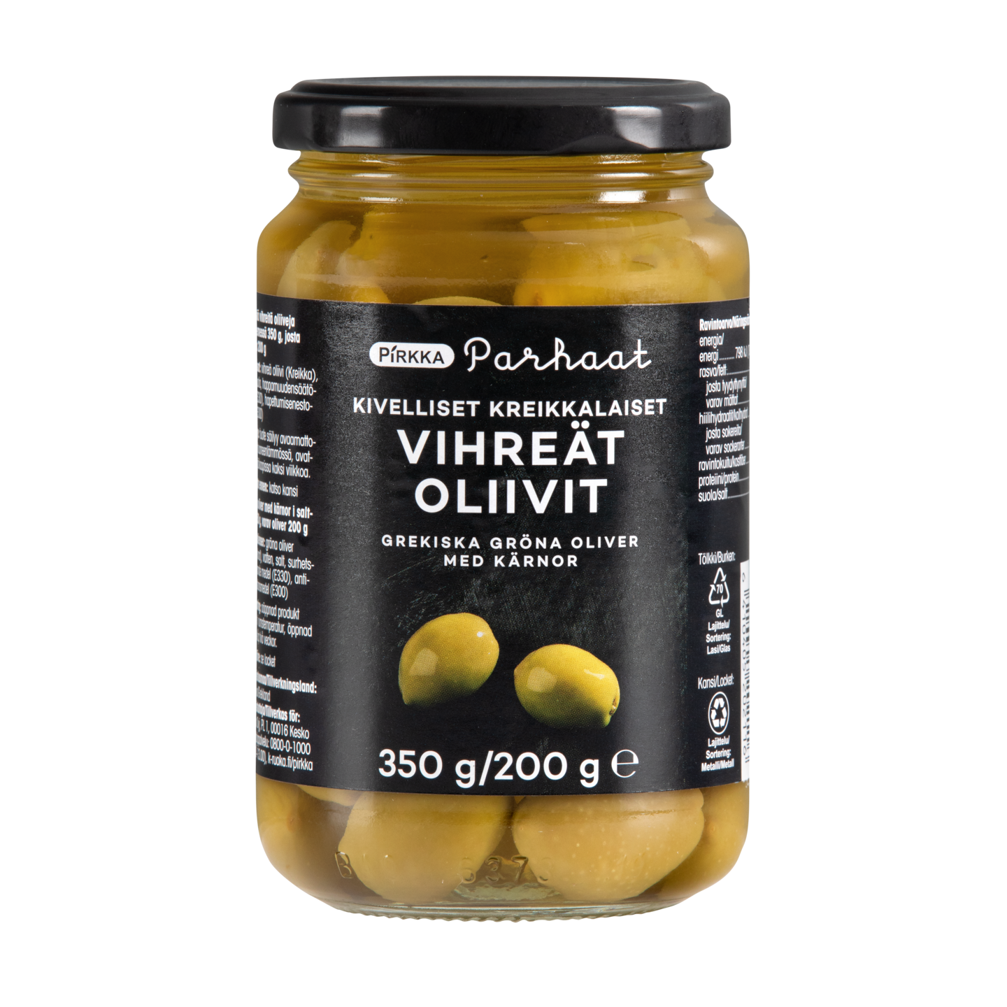 Pirkka Parhaat kivelliset kreikkalaiset vihreät oliivit 350g/200g