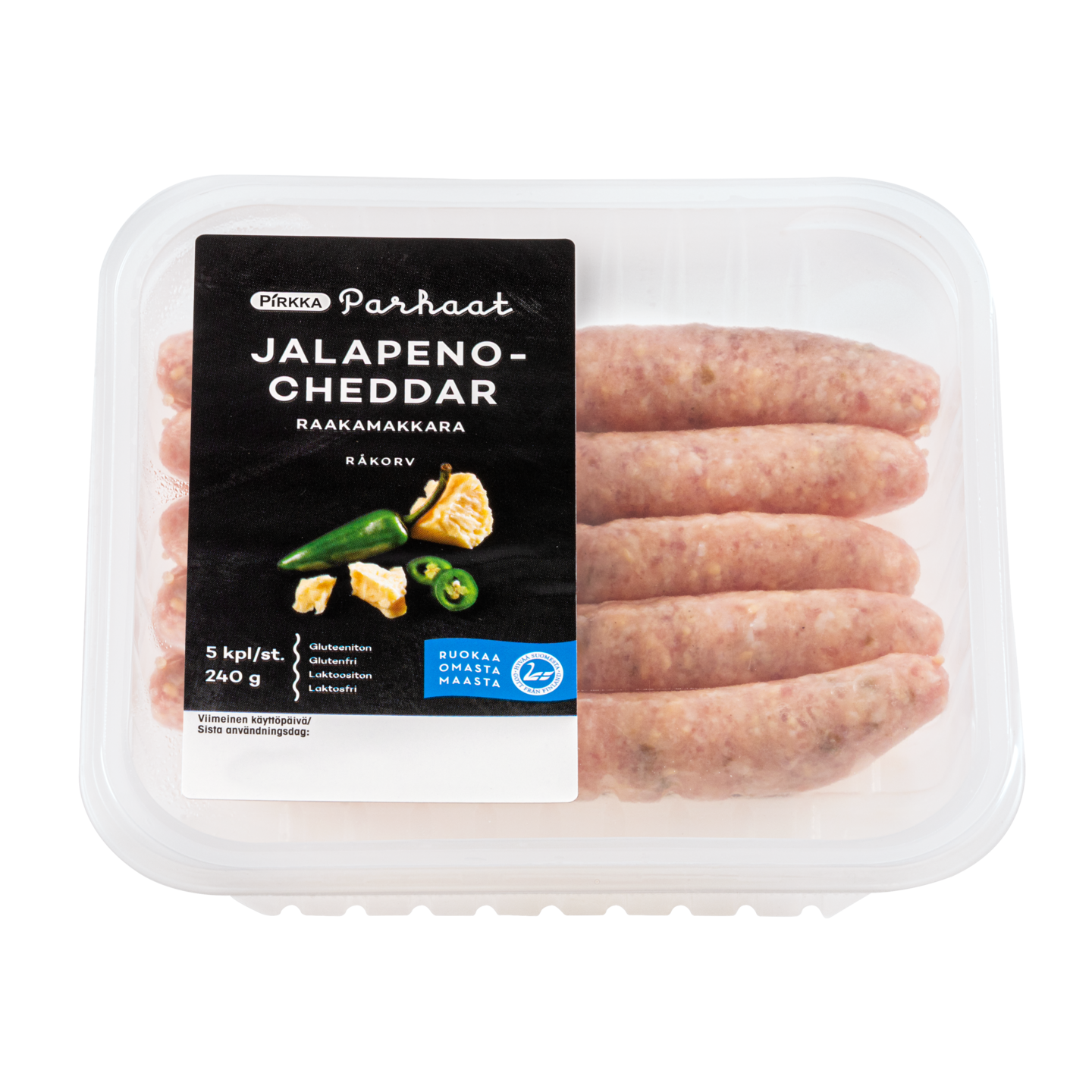 Jalapeno-cheddar raakamakkara on monikäyttöinen herkkumakkara ruoanvalmistukseen. Se sopii erinomaisesti grillattavaksi, pannulla paistettavaksi sekä käytettäväksi erilaisissa keitto-, pasta-, wokki- ja uuniruoissa. Makkara on valmistettu suomalaista sianlihasta ja se sisältää herkullista cheddar-juustoa ja jalapenoa, jotka antavat täyteläisen pikantin maun. Laktoositon ja gluteeniton Hyvää Suomesta- tuote. Valmistaja Wursti Järvenpäässä.
