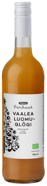 Vaalea luomuglögi on omenatäysmehupohjainen kuusenkerkällä ja jouluisilla mausteilla maustettu täyteläinen juhlajuoma. Kääntele pulloa kevyesti ennen juoman kuumennusta, jotta luomumehu ja mausteet sekoittuvat tasaisesti. Glögin valmistaa Kaarinassa Lapin Maria Oy.