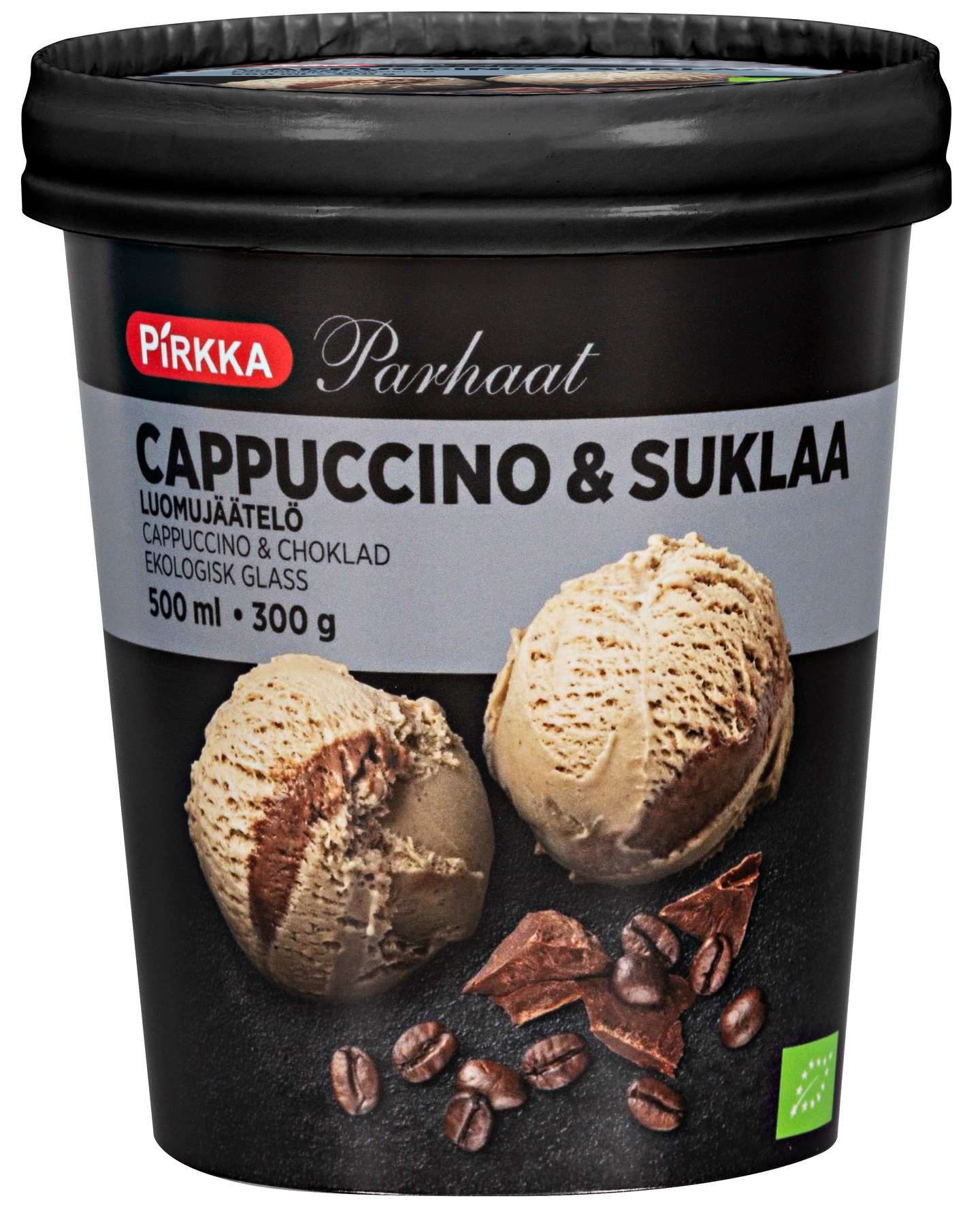 Rakkaudella valmistettu Pirkka Parhaat luomujäätelö syntyy pienessä suomalaisessa jäätelötehtaassa lähes käsityönä. Tuote sisältää maitokahvinmakuista kermajäätelöä ja suklaakastiketta. Puhtaista raaka-aineista tehty luomujäätelö maistuu juuri sellaiselta kuin aidon jäätelön kuuluu maistua.