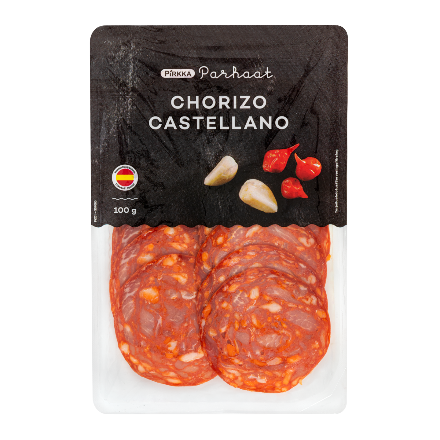 Chorizo Castellano on korkealaatuinen, maukas ja mehevä valmiiksi viipaloitu espanjalainen kestomakkara. Se kuuluu perinteisesti tapaslautaselle, käytä myös patoihin, keittoihin, pastoihin, pizzaan. Gluteeniton tuote.
