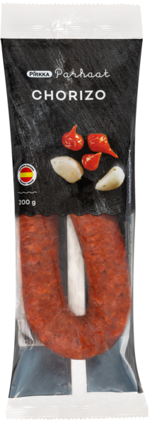 Vahvasti maustettu espanjalainen kestomakkara. Se kuuluu perinteisesti tapaslautaselle, käytä myös patoihin, keittoihin, pastoihin, pizzaan, makkarapannuun, grillivartaisiin. Makkarankuori on poistettava ennen ruoanvalmistusta. Gluteeniton tuote.