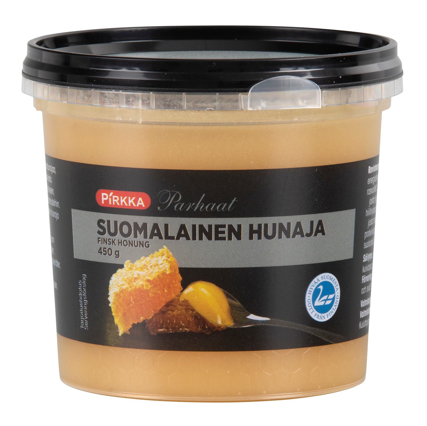 Pirkka Parhaat suomalainen hunaja on monikukkahunajaa, joka kiteytyy luontaisesti. Se sopii juomien makeuttamiseen, jälkiruokiin, leivontaan ja ruoanlaittoon. Hunajaa ei suositella annettavaksi alle yksivuotiaille lapsille.