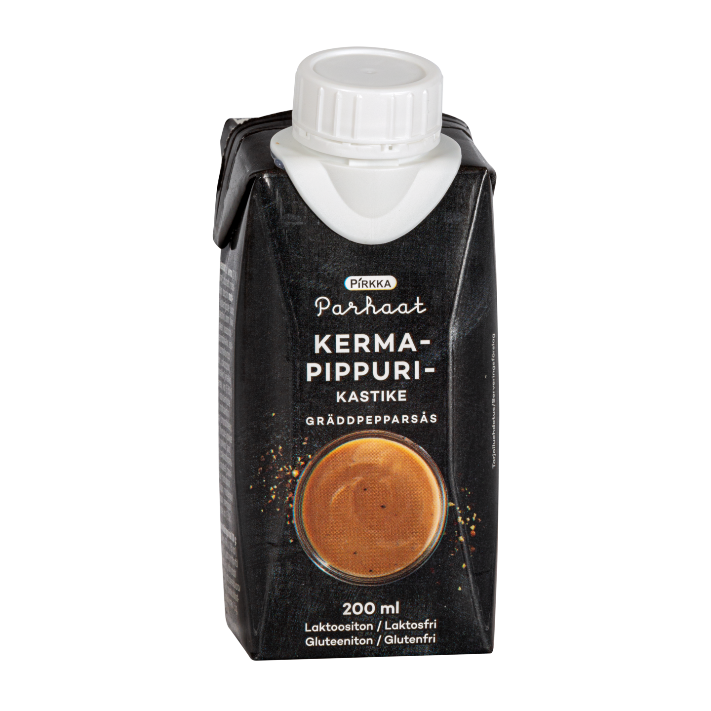 Täyteläisen kermainen ja pippurinen kastike sopii esimerkiksi leikkeiden, lihamurekkeen tai -pyöryköiden kanssa. Laktoositon ja gluteeniton. Valmistettu Suomessa. Säilyy avaamattomana huoneenlämmössä.