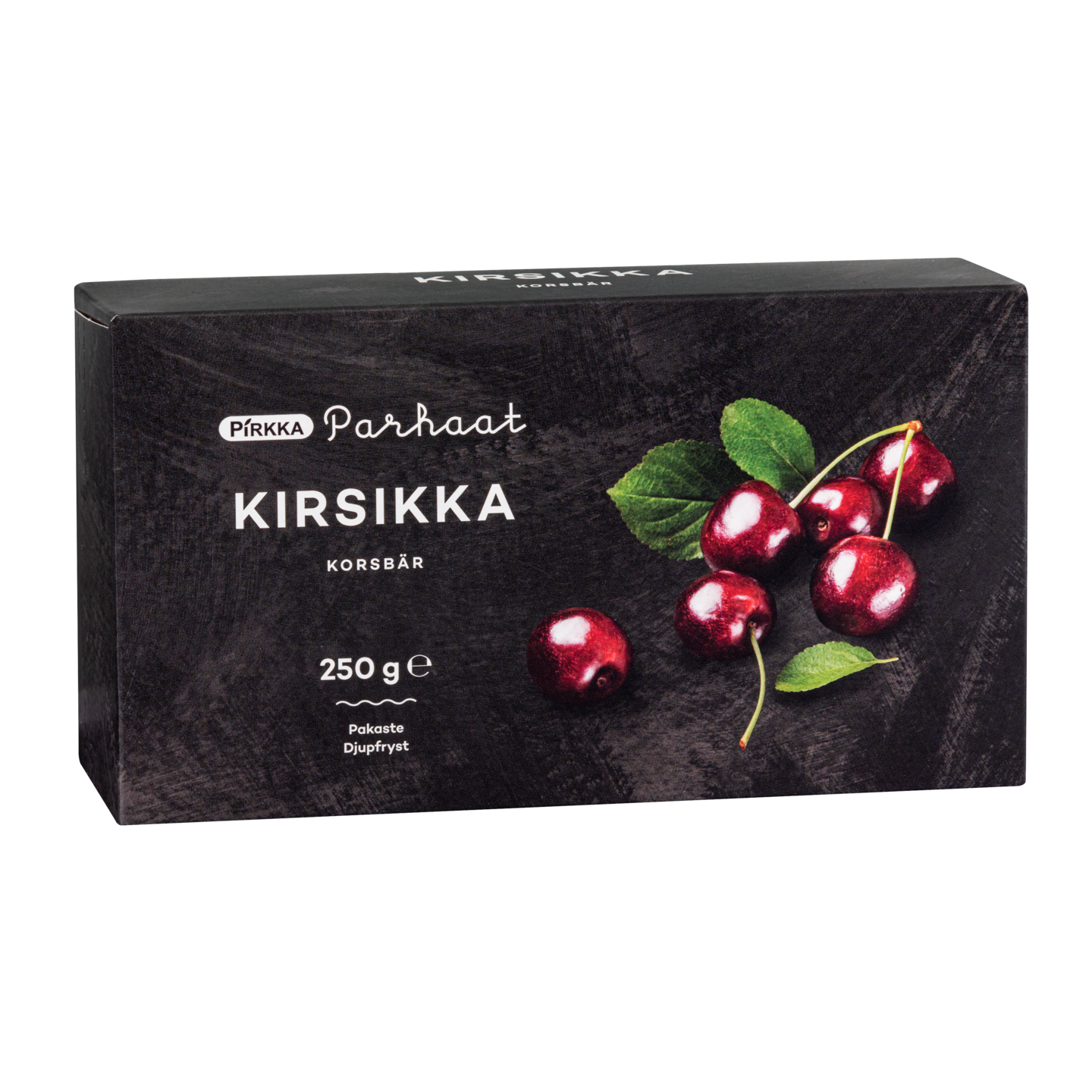 Pirkka Parhaat kirsikoita voi käyttää tuoreiden kirsikoiden tavoin. Kirsikat ovat parhaimmillaan hiukan kohmeisina. Kirsikat kypsyvät makeiksi ja meheviksi Kreikan auringon alla. Halkaise kirsikat ennen käyttöä, jotta varmistat, että ne ovat kivetömiä.