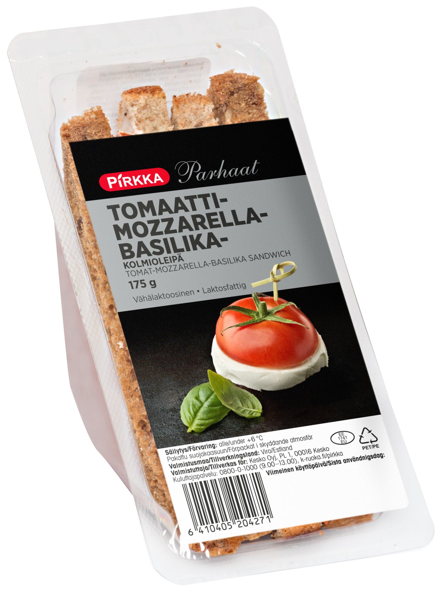 Pirkka Parhaat tomaatti-mozzarella-basilikakolmioleipä 175g