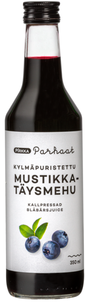 Kylmäpuristettu täysmehu on 100 % mehua, johon ei ole lisätty mitään. Mehu valmistetaan kuumentamatta, prässäämällä marjat, jolloin saadaan talteen marjojen maku ja vitamiinit mahdollisimman tarkasti. Säilyvyyden takaamiseksi täysmehu pastöroidaan. Nauti täysmehua sellaisenaan shottina tai laimenna juomaksi esimerkiksi 1 osa mehua 4 osaa vettä.