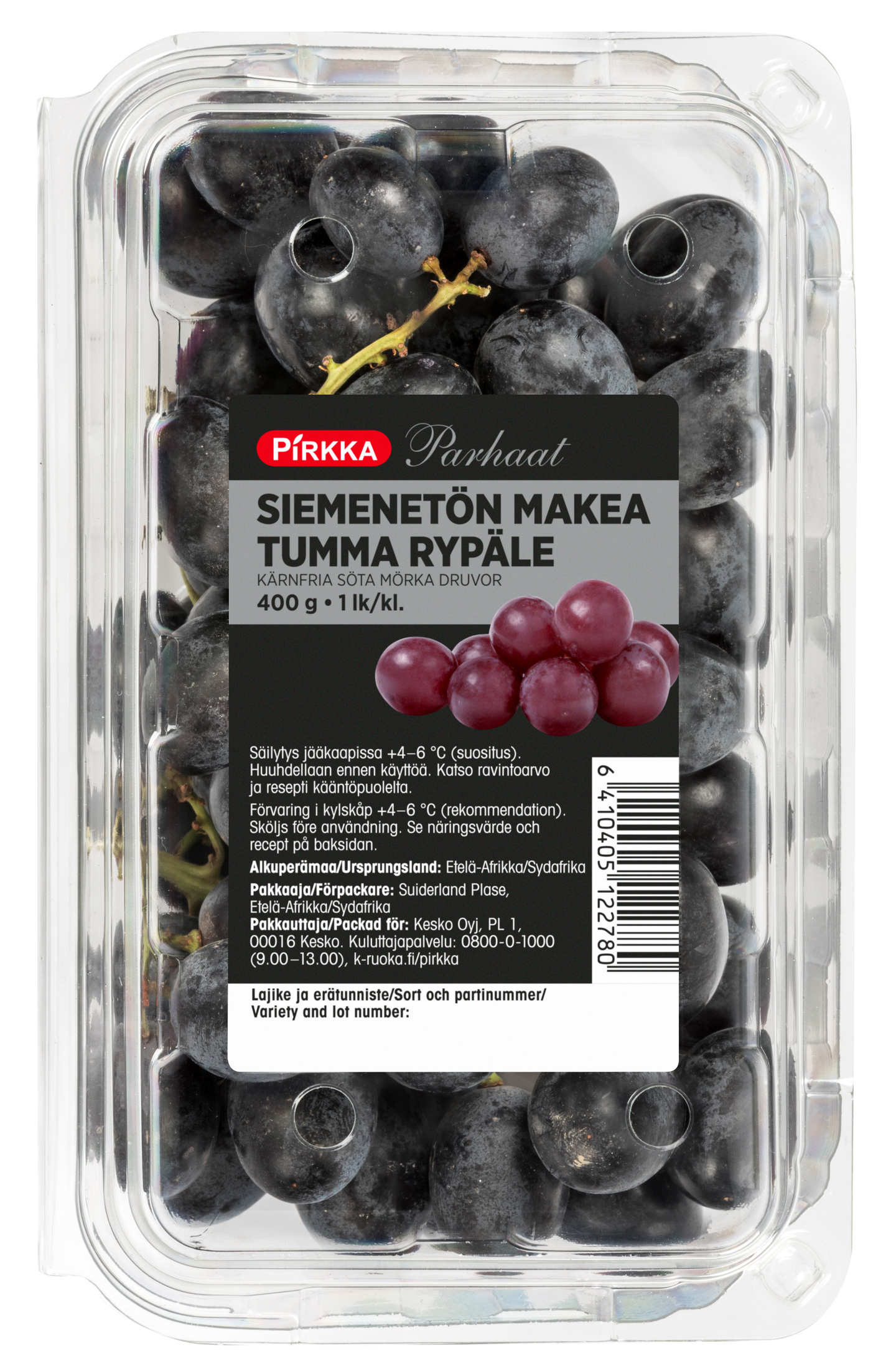 Pirkka Parhaat siemenetön makea tumma rypäle 400g 1lk