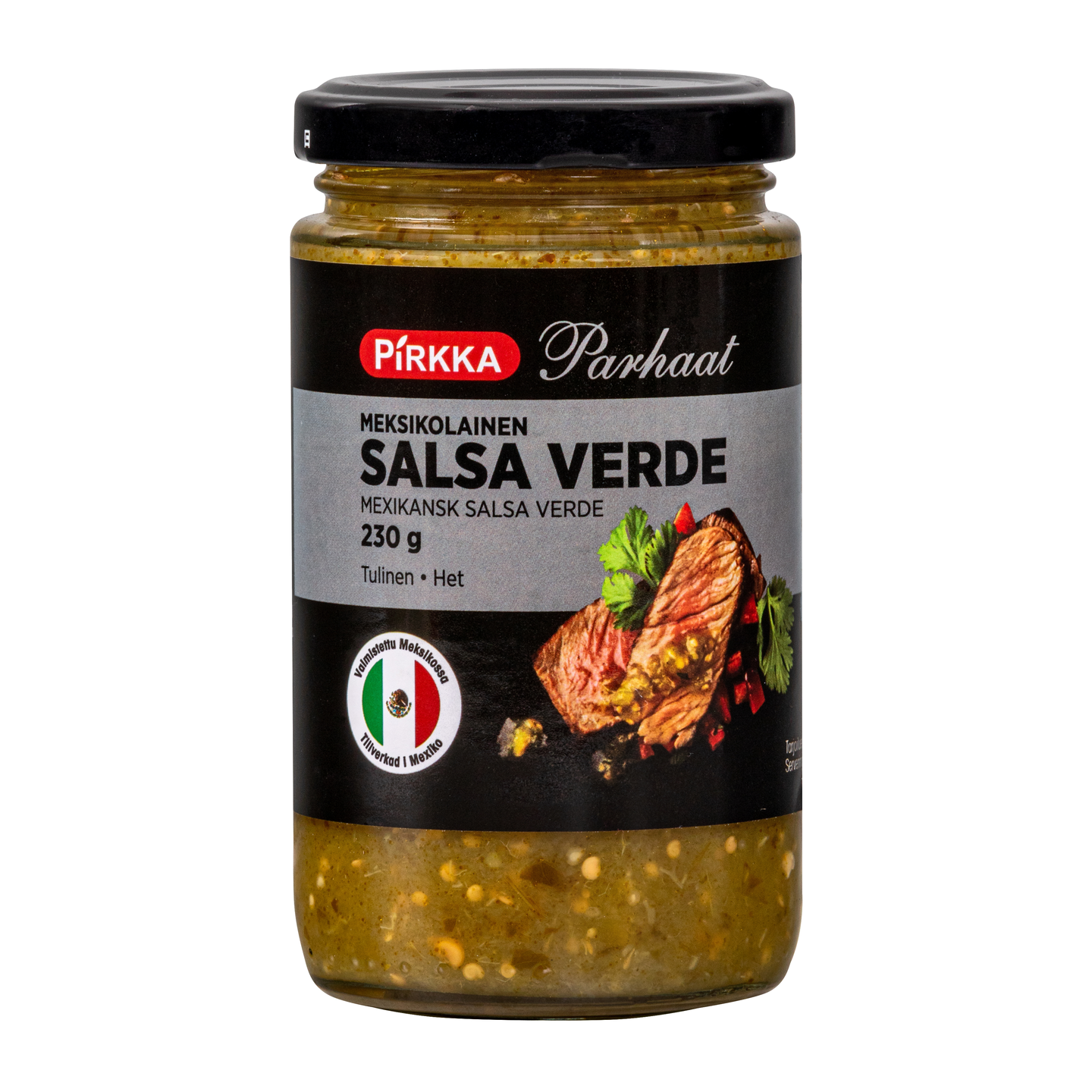 Pirkka Parhaat meksikolainen salsa verde on tulinen ja sileärakenteinen vihreä salsakastike, joka sopii ruokien maustamiseen, lisäkkeeksi tai dippikastikkeeksi. Kokeile kastiketta monipuolisesti ruuanvalmistuksessa esimerkiksi riisi-, pasta-, kasvis-, liha-, kala- ja äyriäisruoissa. Valmistettu Meksikossa.