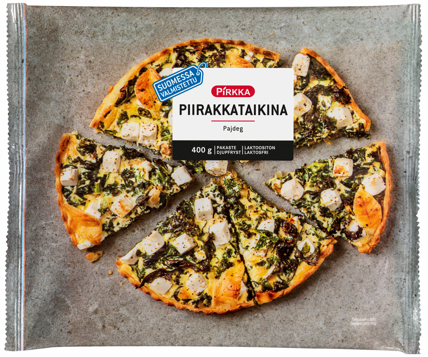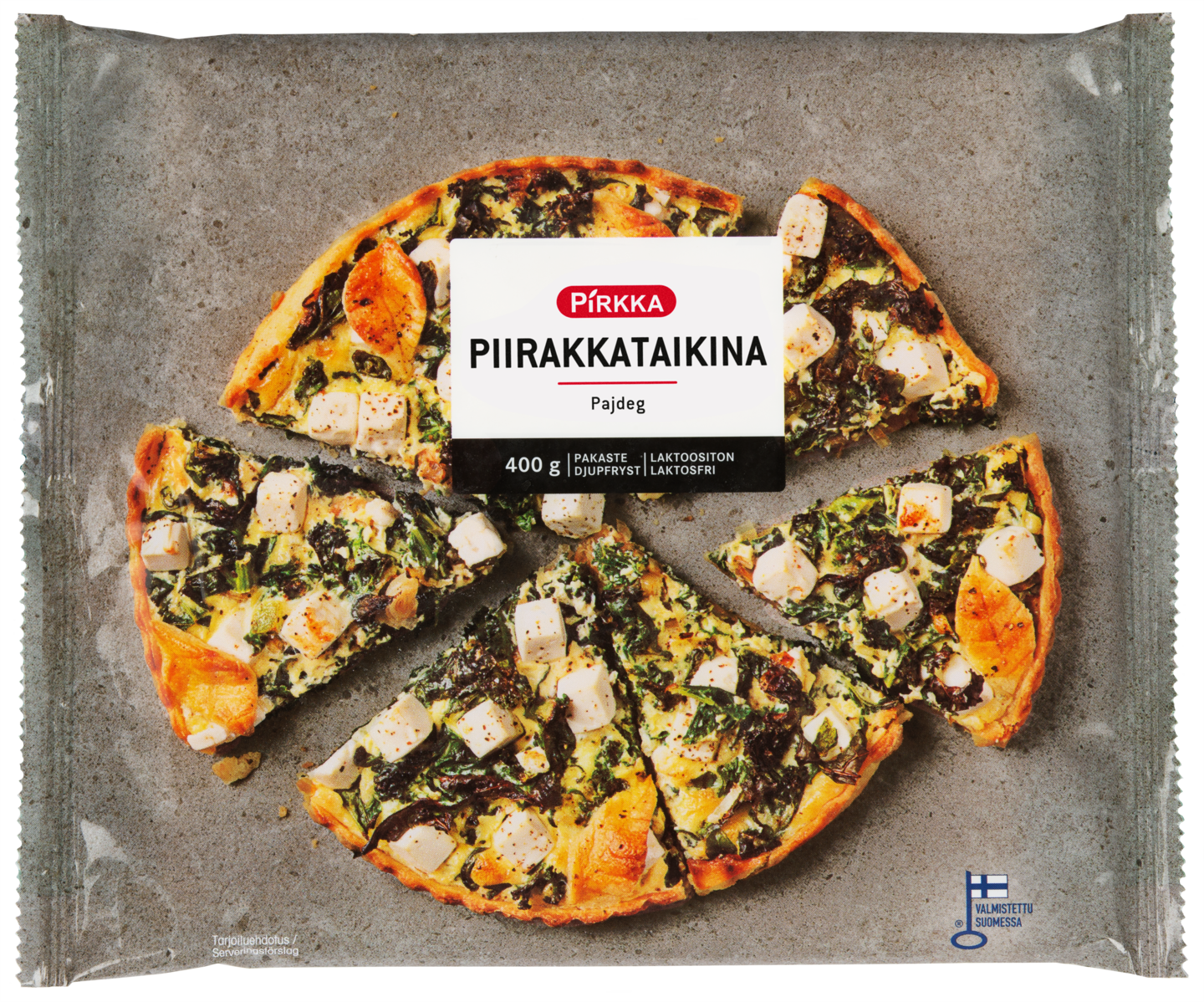 Pirkka piirakkataikina sopii pohjaksi suolaisiin piirakoihin. Taikina riittää matalaan piirakkavuokaan (halkaisija noin 30 cm) sekä korkeareunaiseen irtopohjavuokaan (halkaisija noin 26 cm). Taikinasta voit valmistaa myös suolaisia keksejä. Tuote on laktoositon, vegaaninen ja valmistettu Suomessa.