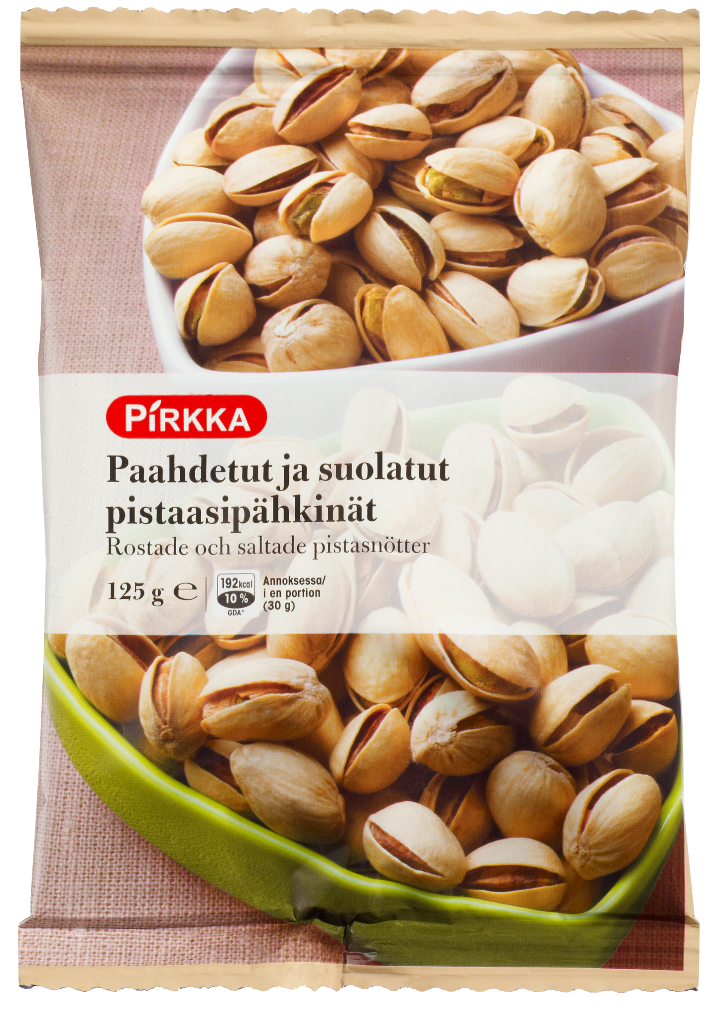 Pirkka paahdetut ja suolatut pistaasipähkinät 125g