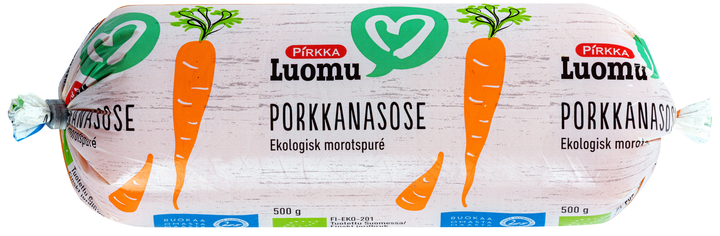 Suomalaisesta porkkanasta valmistettu Pirkka Luomu porkkanasose sopii erinomaisesti keittoihin, laatikoihin ja leivontaan.