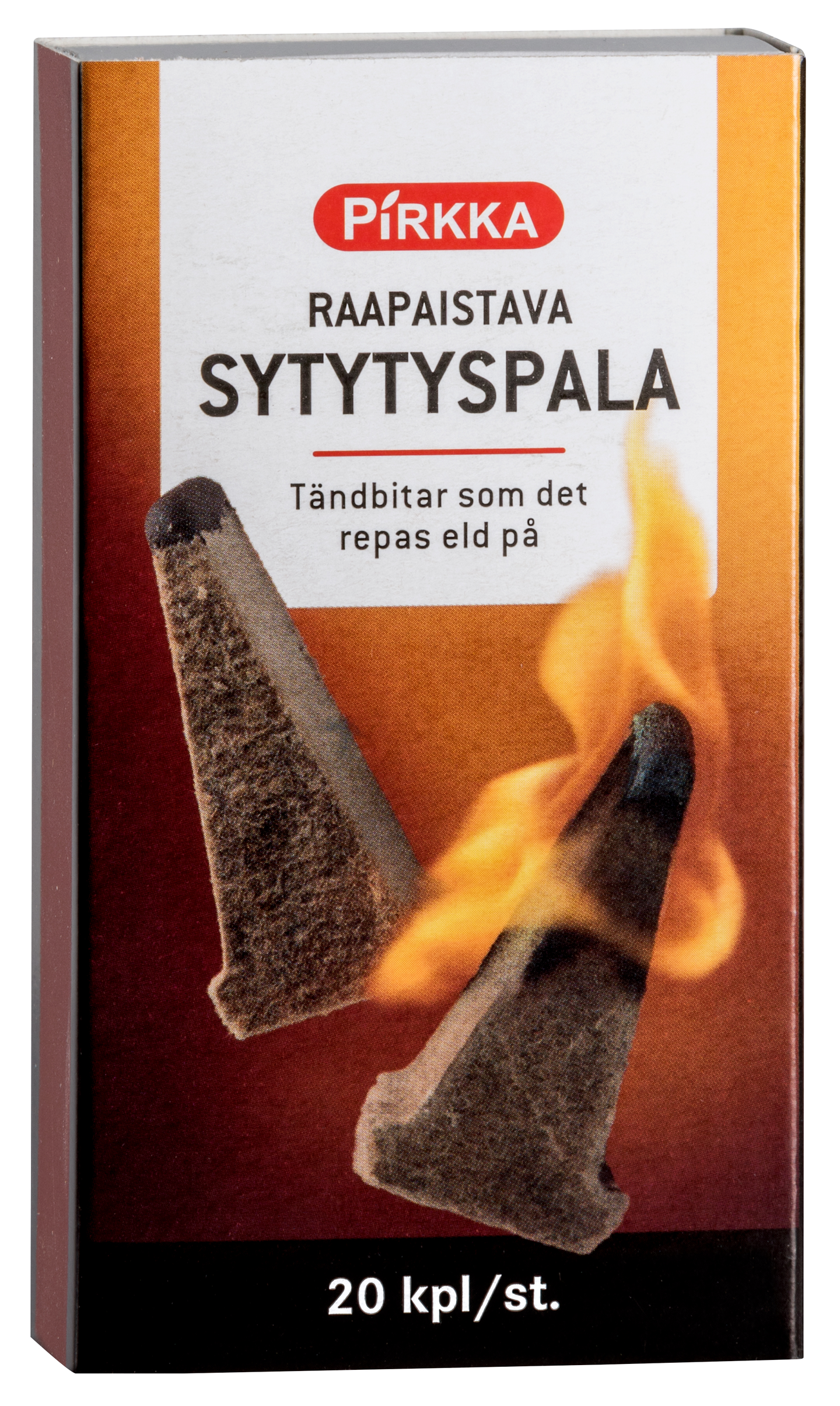 Pakkaus sisältää 20 kpl parafiinillä kyllästettyä sytytyspalaa. Irrota sytytyspala levystä ja sytytä raapaisemalla kuten tulitikku. Paloaika noin 6 minuuttia. Soveltuu esim. nuotion, takan tai grillin sytyttämiseen. Muita sytykkeitä ei tarvita. Puu on peräisin vastuullisesti hoidetusta metsästä.