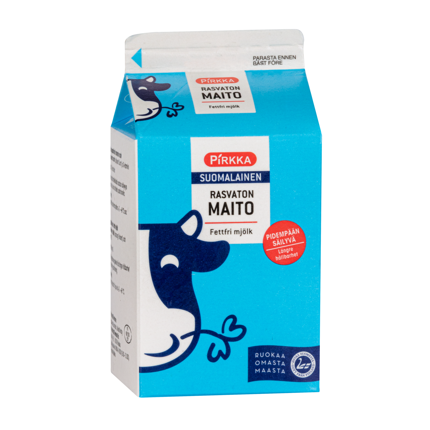 Pirkka suomalainen rasvaton maito on korkeapastöroitu.Korkeapastörointitekniikalla maidon säilyvyys saadaan pidemmäksi kuin tavallisella pastöroinnilla. Maidon maku ja käyttöominaisuudet pysyvät maidolle tyypillisinä. Säilyvyyden pidentyessä hävikkiä saadaan vähennettyä.