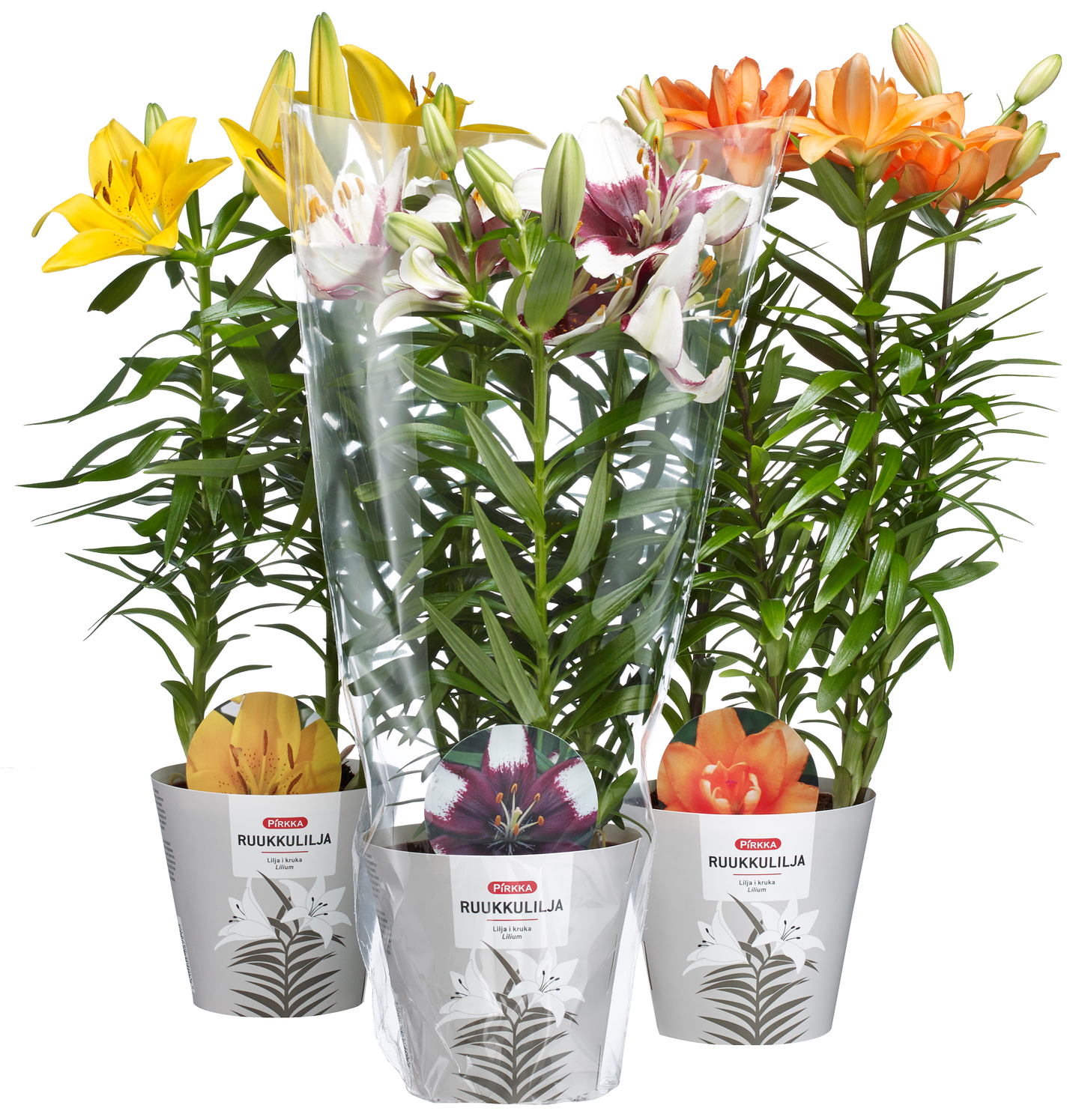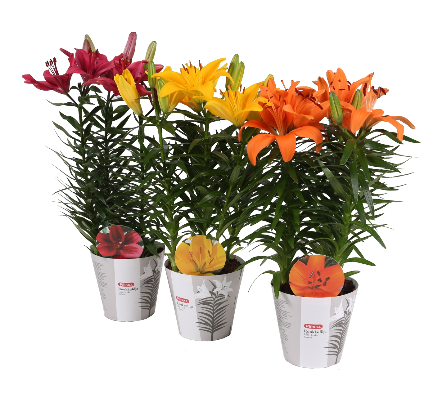 Pirkka ruukkulilja on kaunis ulkokukka, joka kukkii koko kesän. Hoito-ohje: Ruukkulilja viihtyy parhaiten hyvin valoisassa ja aurinkoisessa paikassa, mutta suojassa suoralta auringonpaisteelta. Lilja voidaan istuttaa puutarhaan aurinkoiselle paikalle suoraan maahan, tai pitää parvekkeella tai terassilla omassa ruukussaan kukinnan ajan. Kukinnan jälkeen lilja voidaan istuttaa puutarhaan, jossa se kukkii uudelleen seuraavana kesänä. Ruukkuliljaa ei tule kastella liikaa, eikä se saa kuivua. Lannoitus ei ole tarpeen kastelun yhteydessä. Huomioi ruukkuliljan hienojakoisen siitepölyn helposti tahraava vaikutus tekstiileihin. Saatavuus: huhti-heinäkuu.
