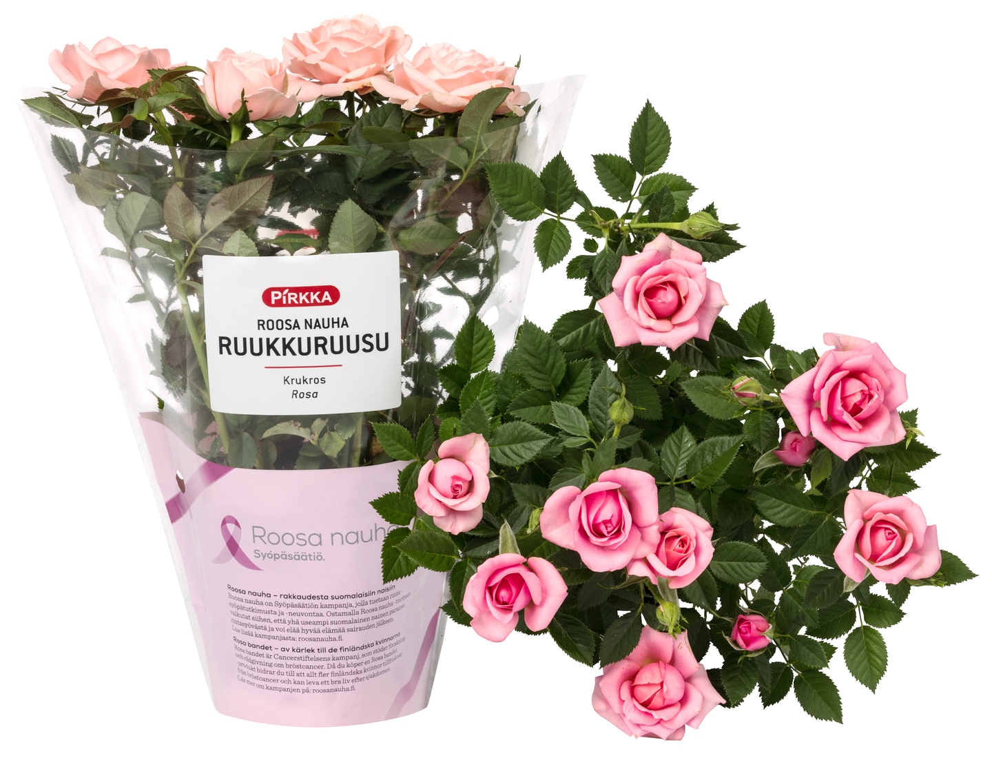 Pirkka ruukkuruusu on perinteinen ruukkukukka. Se sopii sisälle talvella, ja kesällä se voidaan istuttaa ulos. Pirkka ruukkuruusu kukkii ulkona koko kesän. Hoito-ohje: Ruukkuruusu viihtyy huoneenlämmössä ja hieman huoneenlämpöä alemmassa 15-20°C:n lämpötilassa hyvin valoisassa paikassa, mutta suoralta auringonpaisteelta suojassa. Altakastelu on suositeltavin, haalealla vedellä säännöllisesti. Ruukkuruusu tulee kastella kohtuullisesti, se ei saa kuivahtaa eikä seisoa vedessä. Säilytä ruusut erillään etyleeniä tuottavista hedelmistä.