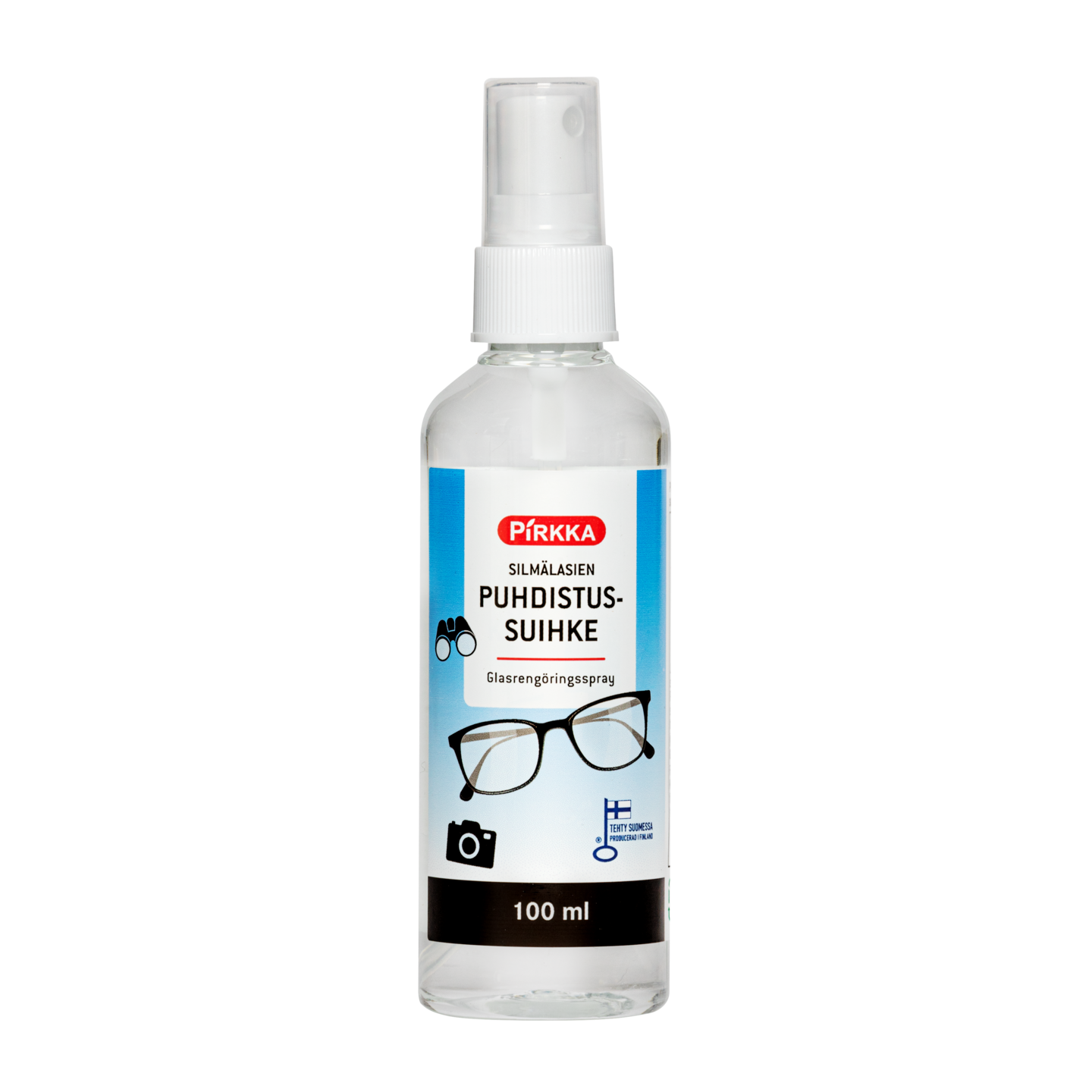 Puhdistussuihke silmälaseille, uimalaseille, tietokoneiden ja tablettien näytöille, kameroiden objektiiveille. Suosittelemme käyttämään nukkaamatonta, optiikalle tarkoitettua liinaa.