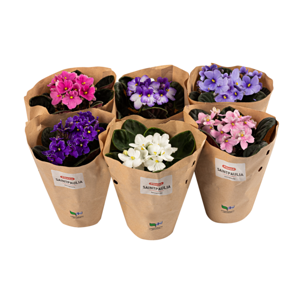 Pirkka St Paulia ruukku on ympärivuotinen ruukkukukka. Säännöllisellä kastelulla ja lannoittamisella Pirkka St Paulia kukkii pitkään. Hoito-ohje: Saintpaulia viihtyy parhaiten huoneenlämmössä suoralta auringonpaisteelta suojassa, mutta valoisassa paikassa. Altakastelu on suositeltavin haalealla vedellä niukasti tarvittaessa. Saintpaulia sietää kevyen kuivahtamisen. Lehdet eivät kestä sumutusta. Saintpaulian kukinnan jatkumista saa edistettyä poistamalla kuihtuneet kukat. Kesällä kukkaravinnelisäyksen tulee olla niukkaa ja säännöllistä ja talvella vähäistä.Saatavuus: tammi-toukokuu sekä heinä-lokakuu, monipakkaus helmi-maaliskuu.