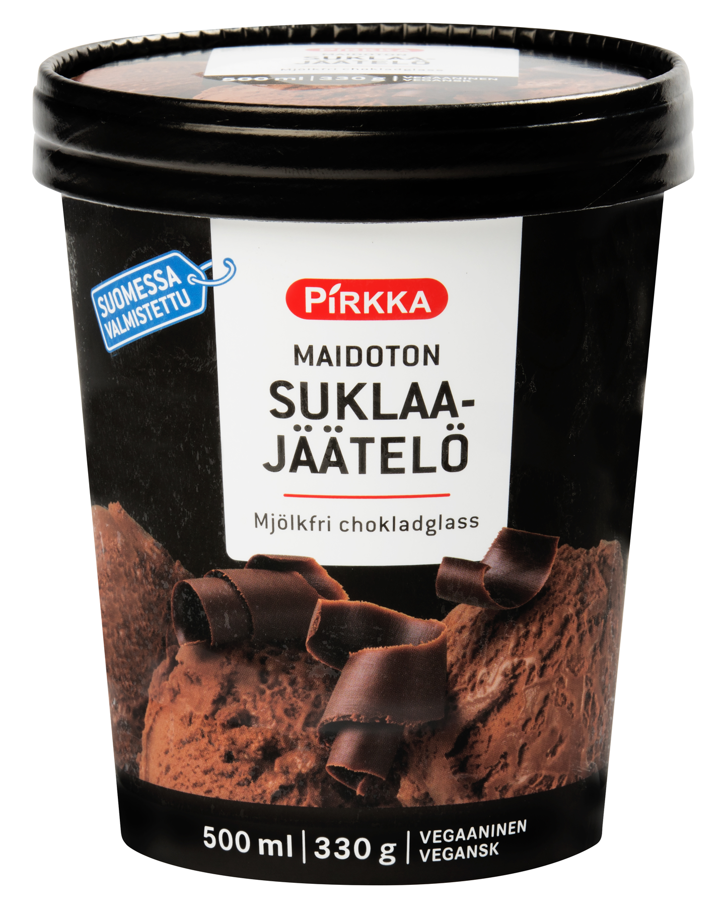 Pirkka maidoton suklaajäätelö on ihanan täyteläinen ja suklainen jäätelö. Tuote sopii vegaaneille sekä moniin erityisruokavalioihin. Valmistaja Caminito, Suomi.