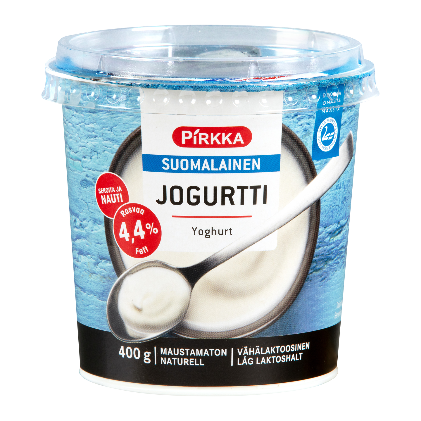 Pehmeän täyteläinen Pirkka maustamaton jogurtti maistuu sellaisenaan. Lisää joukkoon halutessasi marjoja, mysliä tai hunajaa ja pähkinöitä. Pirkka maustamaton jogurtti on tehty Suomessa suomalaisesta maidosta.