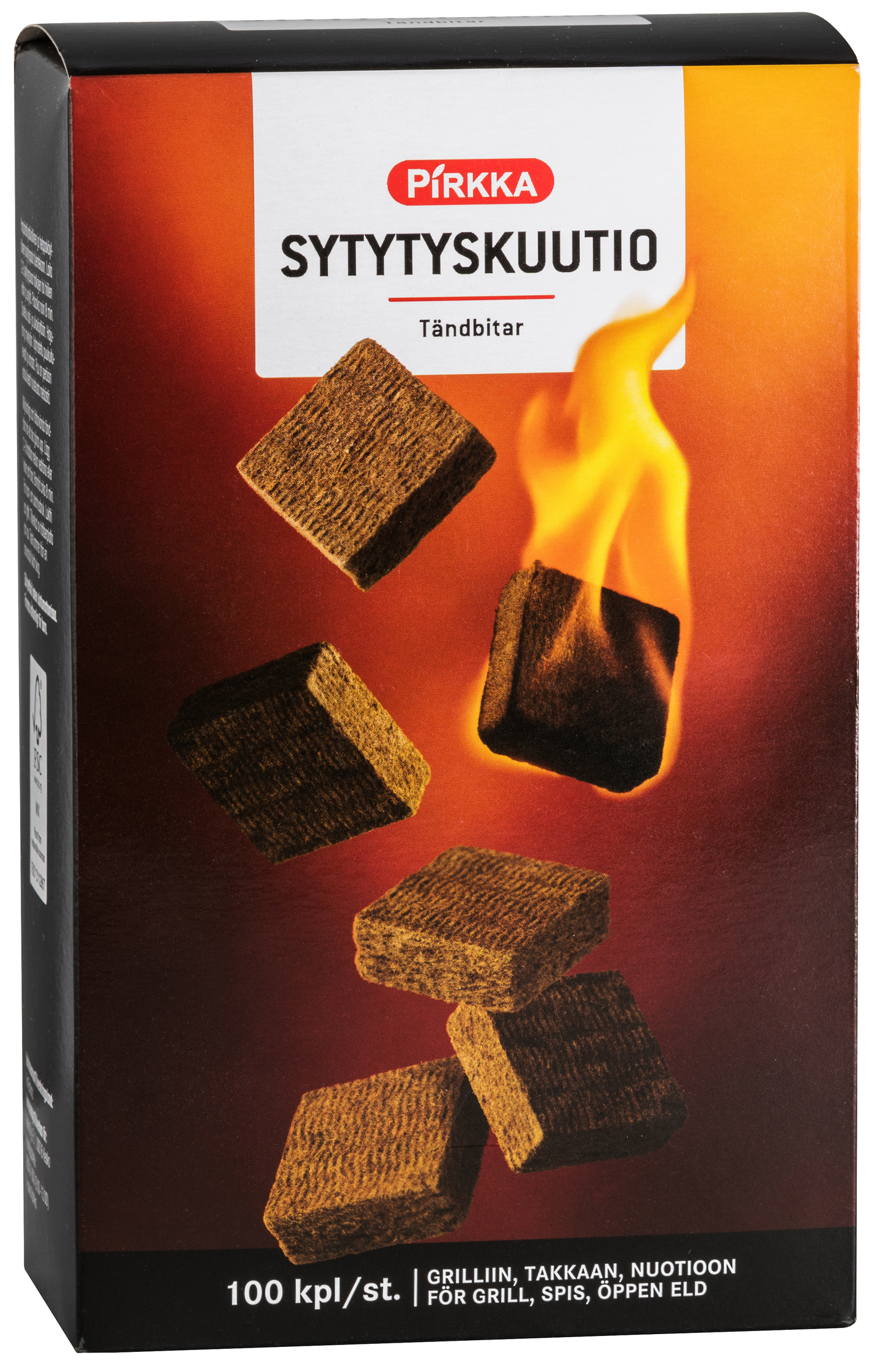 Ympäristöystävällinen ja helppokäyttöinen sytytyspala tulentekoon. Laita 2-3 sytytyspalaa halkojen tai hiilien väliin ja sytytä. Paloaika noin 8 minuuttia. Soveltuu sisä- ja ulkokäyttöön. Valmistettu puukuitulevystä ja vahasta. Puu on peräisin vastuullisesti hoidetusta metsästä.