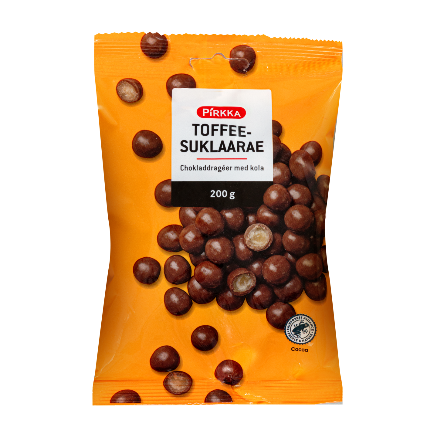 Pirkka toffeesuklaarakeet ovat maitosuklaakuorrutteisia makeisia, joissa on toffeenmakuinen sydän. Suklaan valmistuksessa käytetty kaakao on Rainforest Alliance -sertifioitua. Kokeile toffeesuklaarakeita rouhittuna myös leivontaan esimerkiksi muffinsseihin tai kahvikakkuihin. Pirkka toffeesuklaarakeet valmistaa Suomessa Riihikoskella Finlandia Candy.