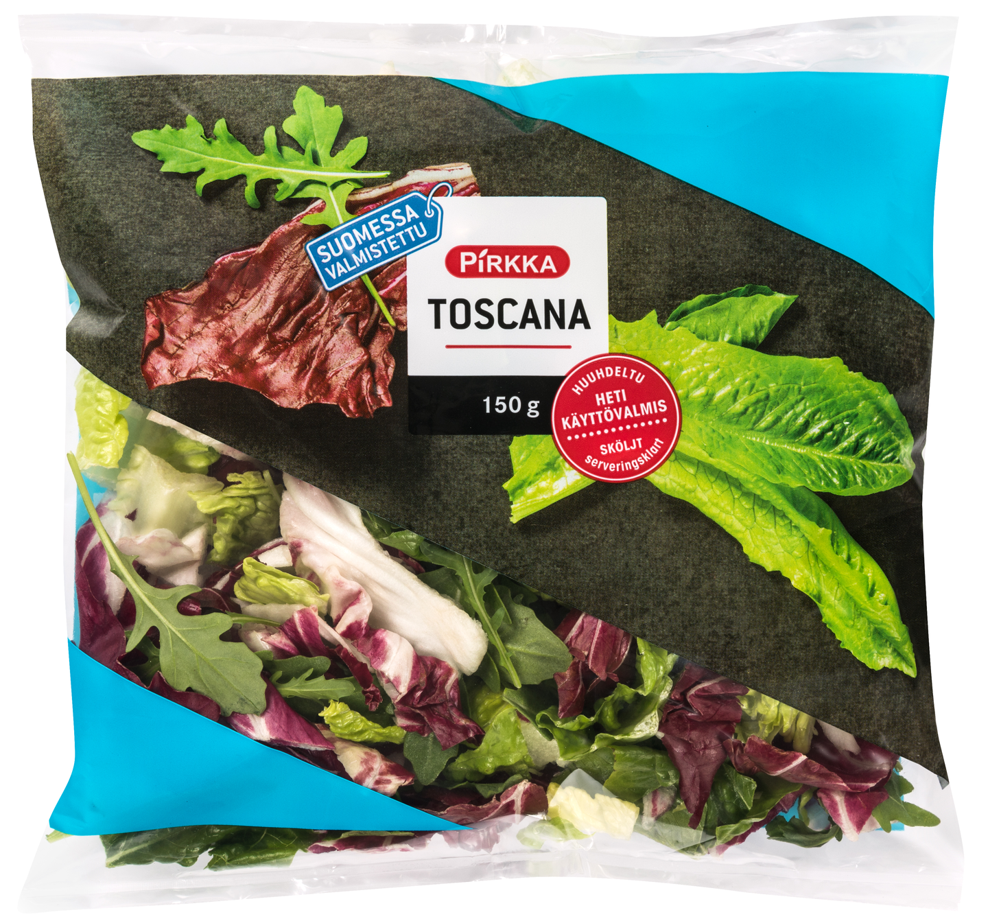 Pirkka Toscana salaattisekoitus on värikäs ja maukas välimerellinen valmissalaattisekoitus.Raaka-aineiden alkuperämaat vaihtelevat sesongeittain. Ajantasainen alkuperämaatieto löytyy jokaisesta pakkauksesta.