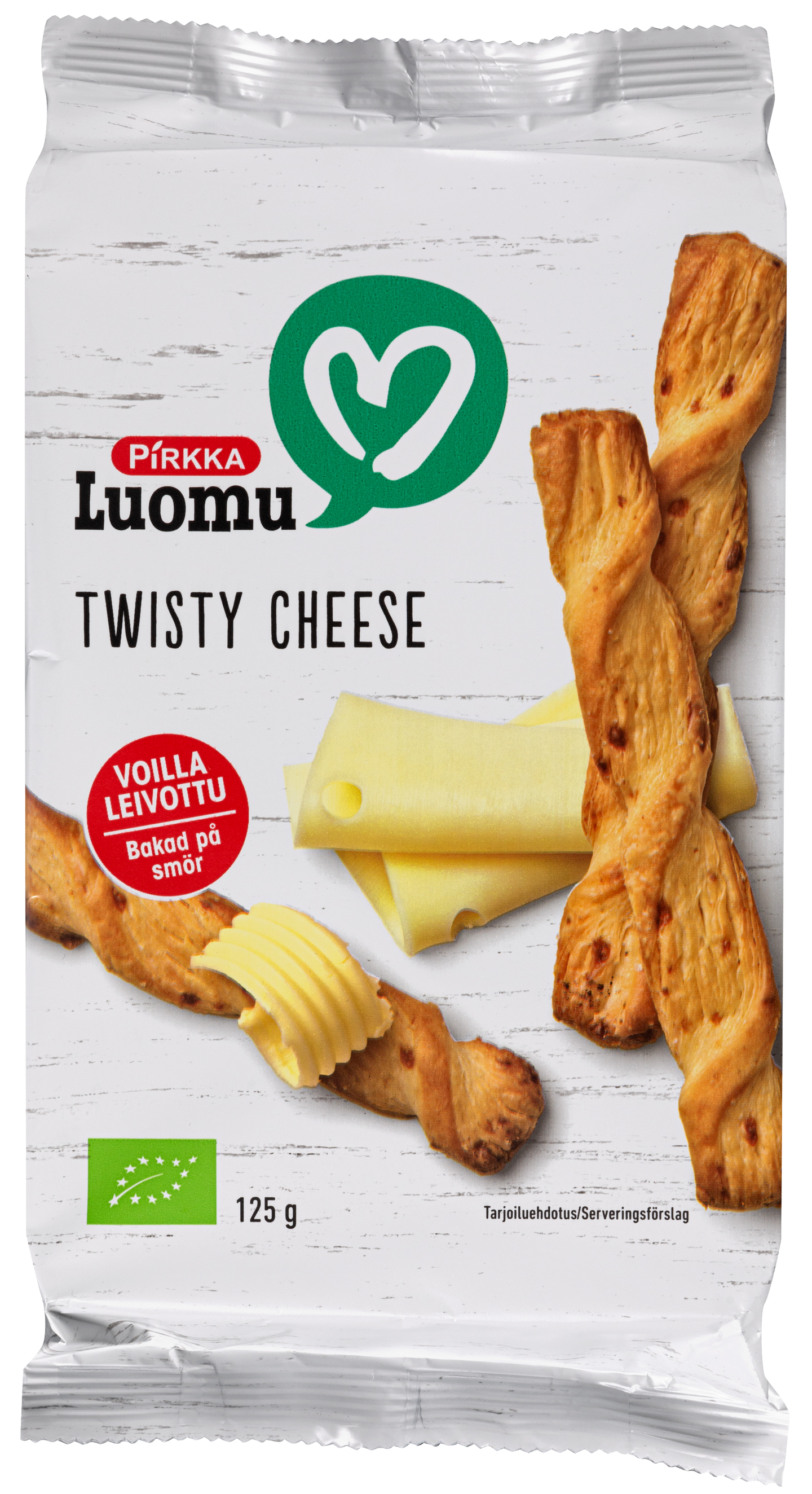 Luomu twistyt ovat juustolla maustettuja suolaisia ja rapeita voitaikinasta leivottuja kierteitä. Tarjoa twistyt esimerkiksi leipätikkujen tapaan antipastolautasella tai napostele sellaisenaan.