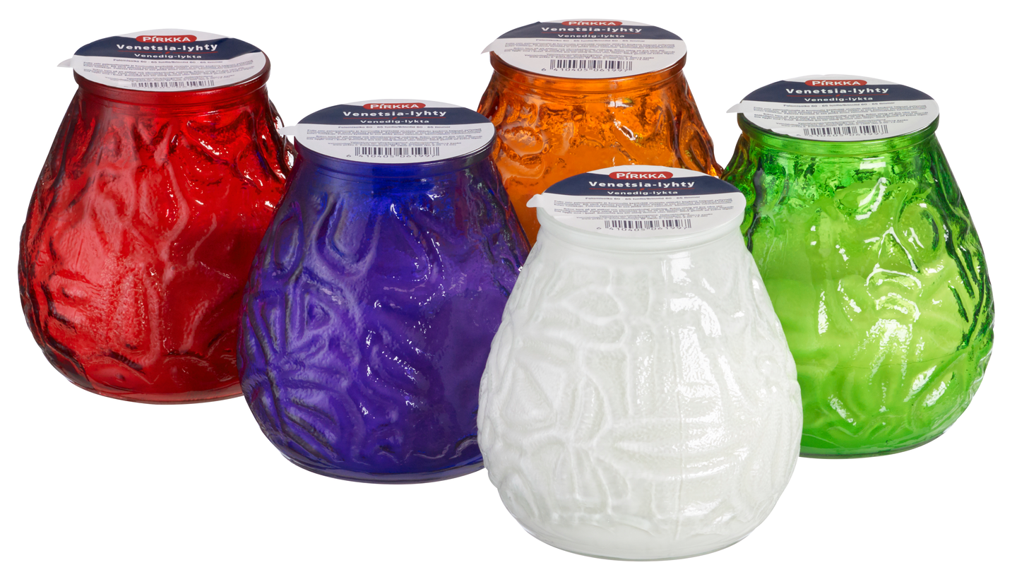 Pirkka Venetsialyhty on perinteinen tunnelmanluoja joka sopii erityisesti elokuun pimeneviin iltoihin, rapujuhliin ja venetsialaisiin iltoihin. Paloaika noin 60-65 tuntia.