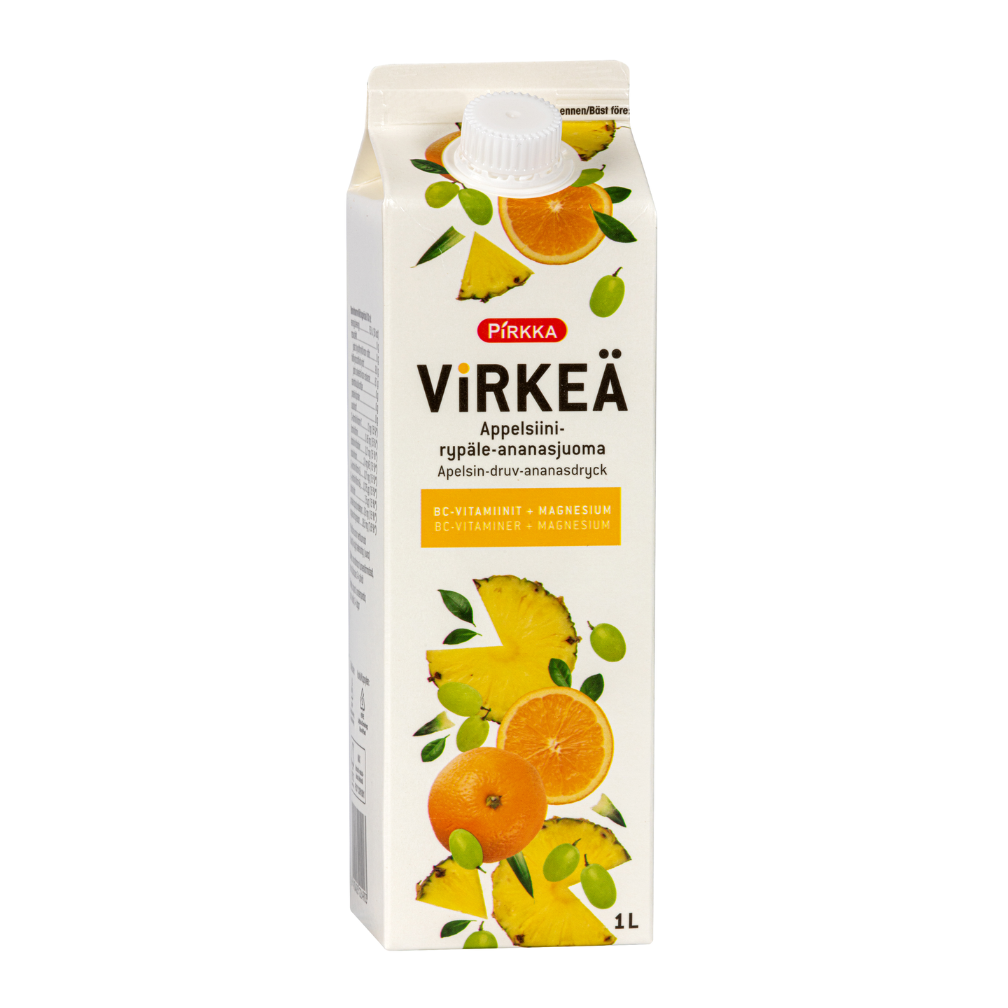 Raikas appelsiini-rypäle-ananasjuoma, johon on lisätty seitsemää B-vitamiinia, C-vitamiinia sekä magnesiumia.
