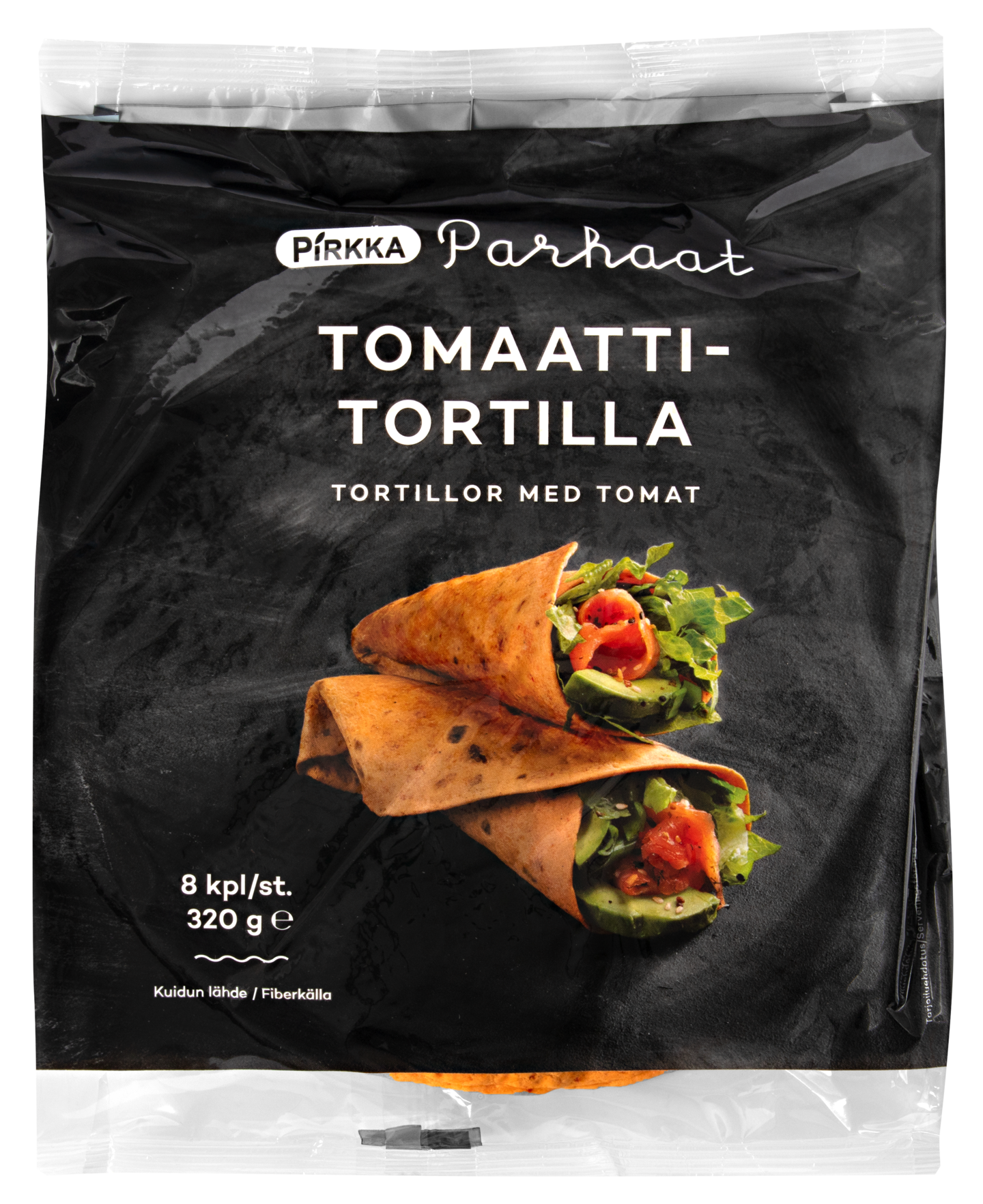 Pehmeä ja ohut Pirkka Parhaat tomaattitortilla sopii wrappien, burritojen ja quesadillojen valmistamiseen. Se on väriltään punainen ja maustettu tomaatilla. Täytä mieleisilläsi täytteillä ja tarjoa kylmänä tai lämpimänä.
