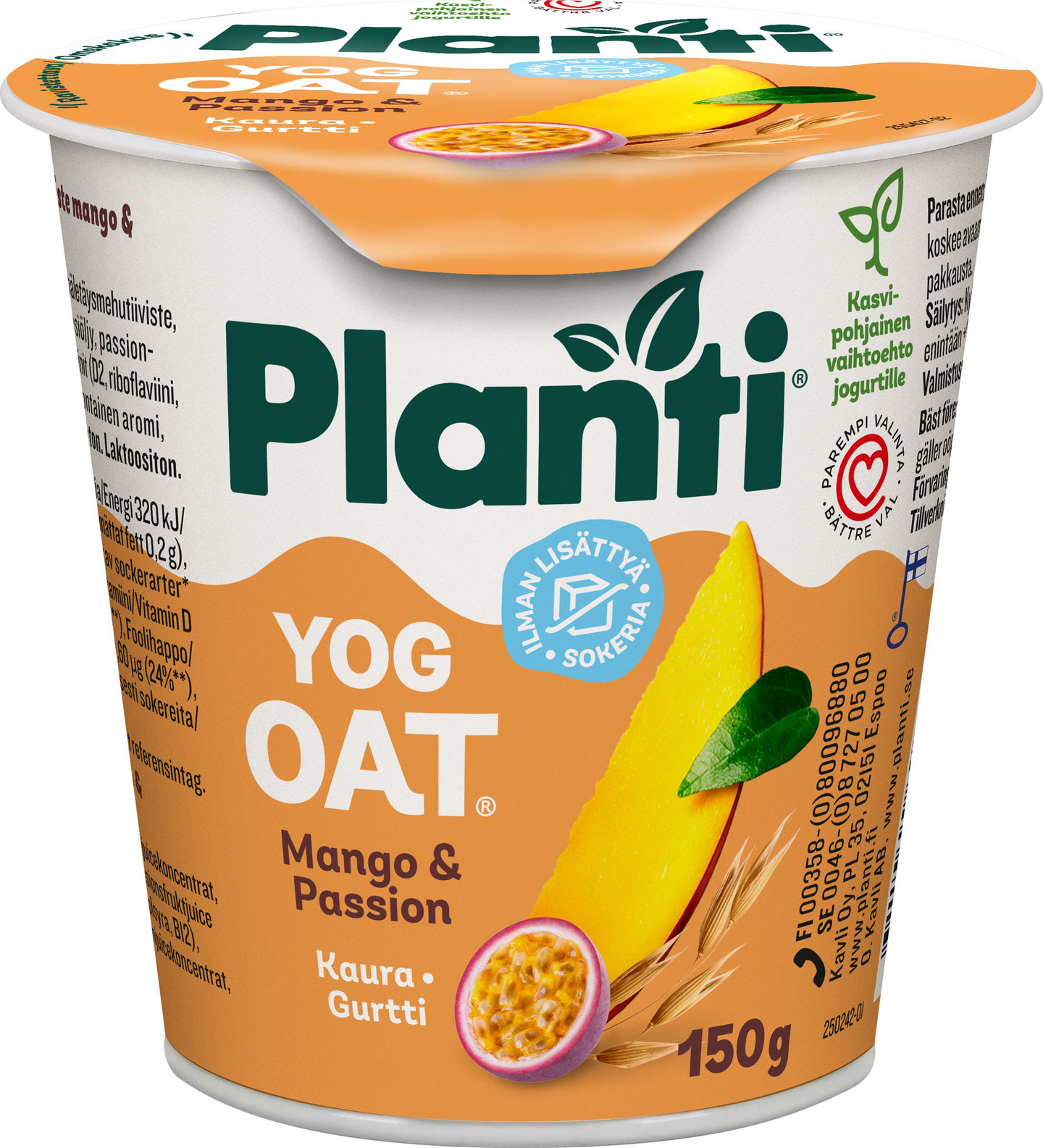 Kaurapohjainen välipala, jossa makeus vain hedelmistä. Ei lisättyä sokeria.