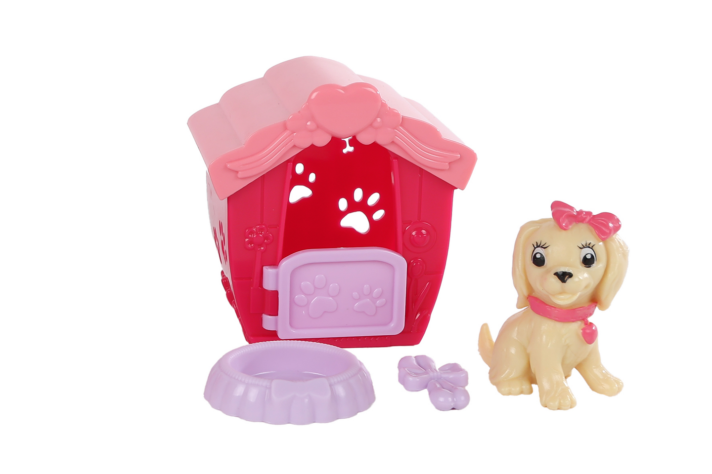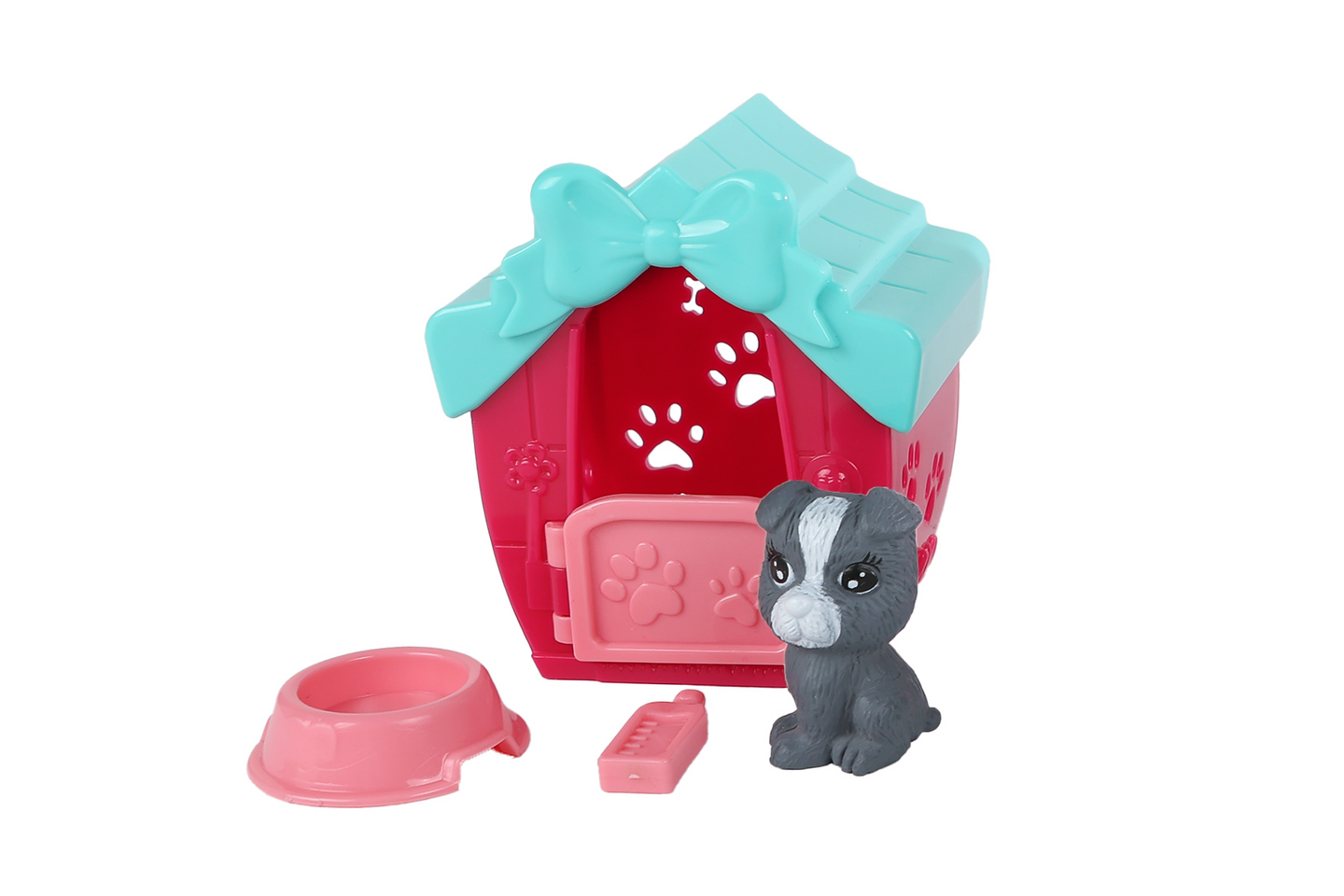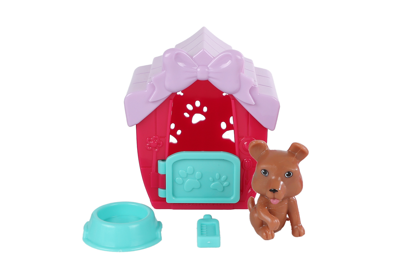 Leikkisetti sisältää koiran, koirankopin ja tarvikkeita. Saatavilla useita erilaisia.