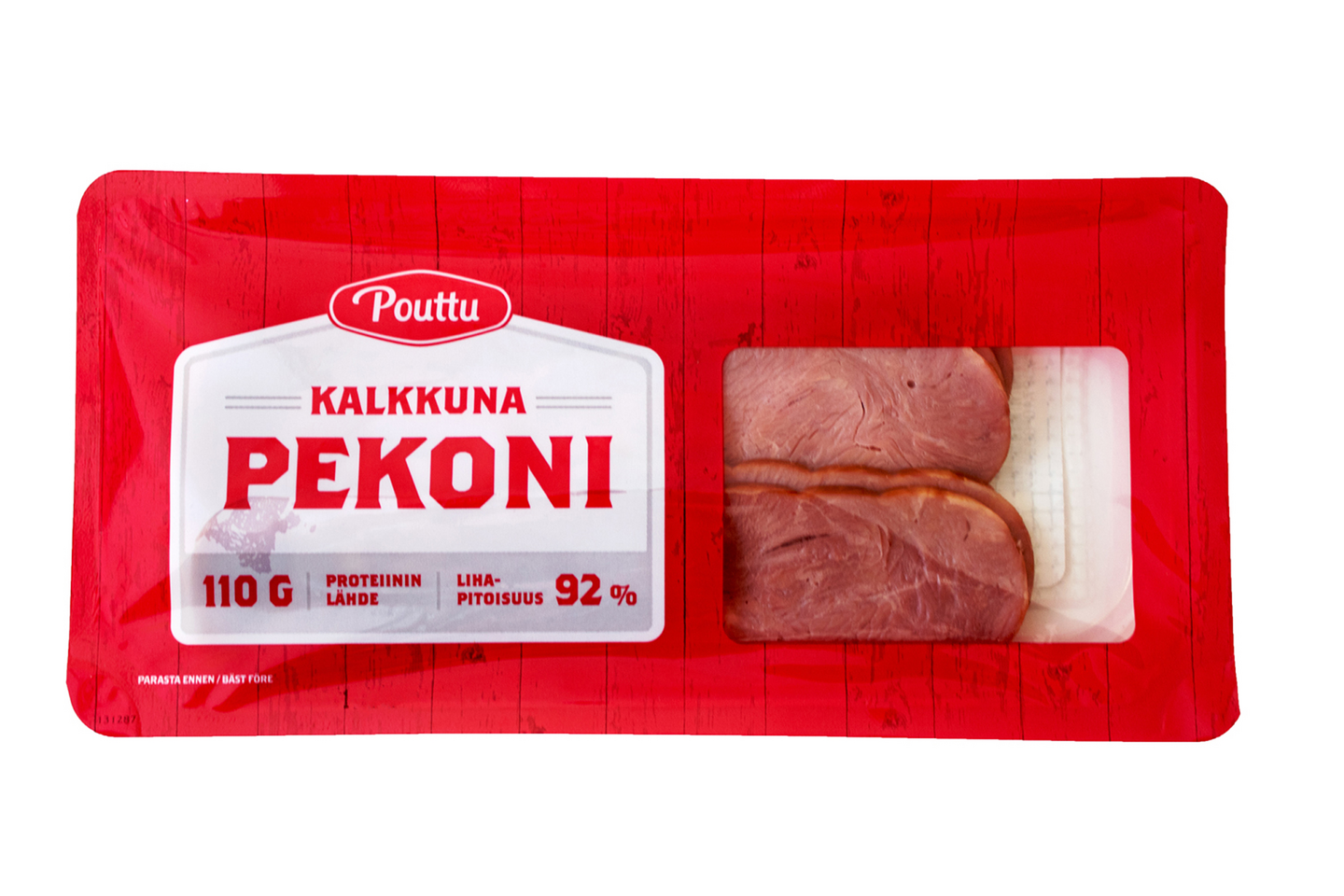 Kalkkunapekonissa on rasvaa vain 4%, joten sitä voi huoletta nauttia aivan niin usein kun pekonia tekee mieli. Kevyempi kalkkunapekoni sopii herkutteluun ja ruoalaittoon samaan tapaan kuin porsaasta valmistettu pekoni. Laktoositon, gluteeniton.