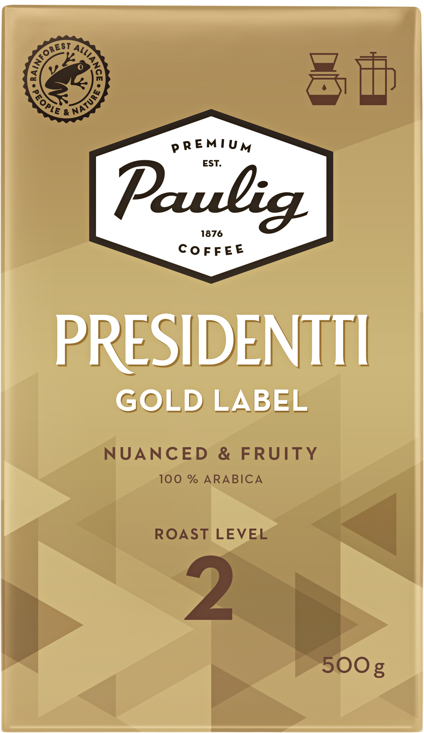 PRESIDENTTI GOLD Kädessäsi ei ole tavallinen kahvi, vaan Presidentti Gold. Makukärki tulee Itä-Afrikan, kuten Etiopian korkealaatuisista, 100 % arabica-kahvipavuista. Vivahteikas kahvi, josta voi maistaa jasmiinikukkien herkkiä makunyansseja. Jälkimaussa korostuvat hedelmäiset vivahteet. Presidentti. Hyvällä maulla vuodesta 1929.