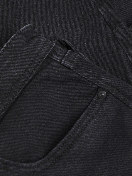 Miesten 5-taskumalliset farkut joustavaa puuvilladenimiä. Vetoketjusepalus. Normaali vyötärö. Klassinen regular fit- malli reidestä lahkeensuuhun.